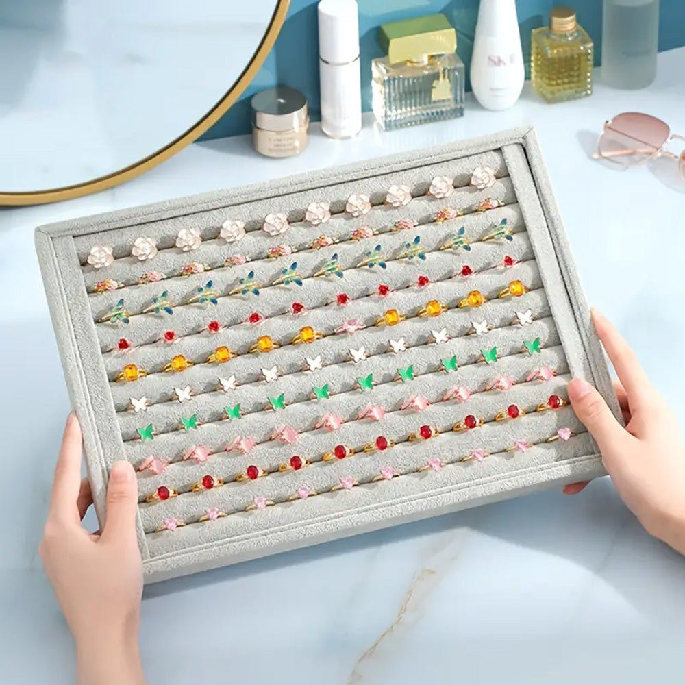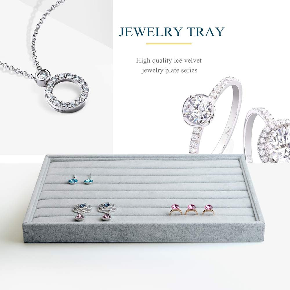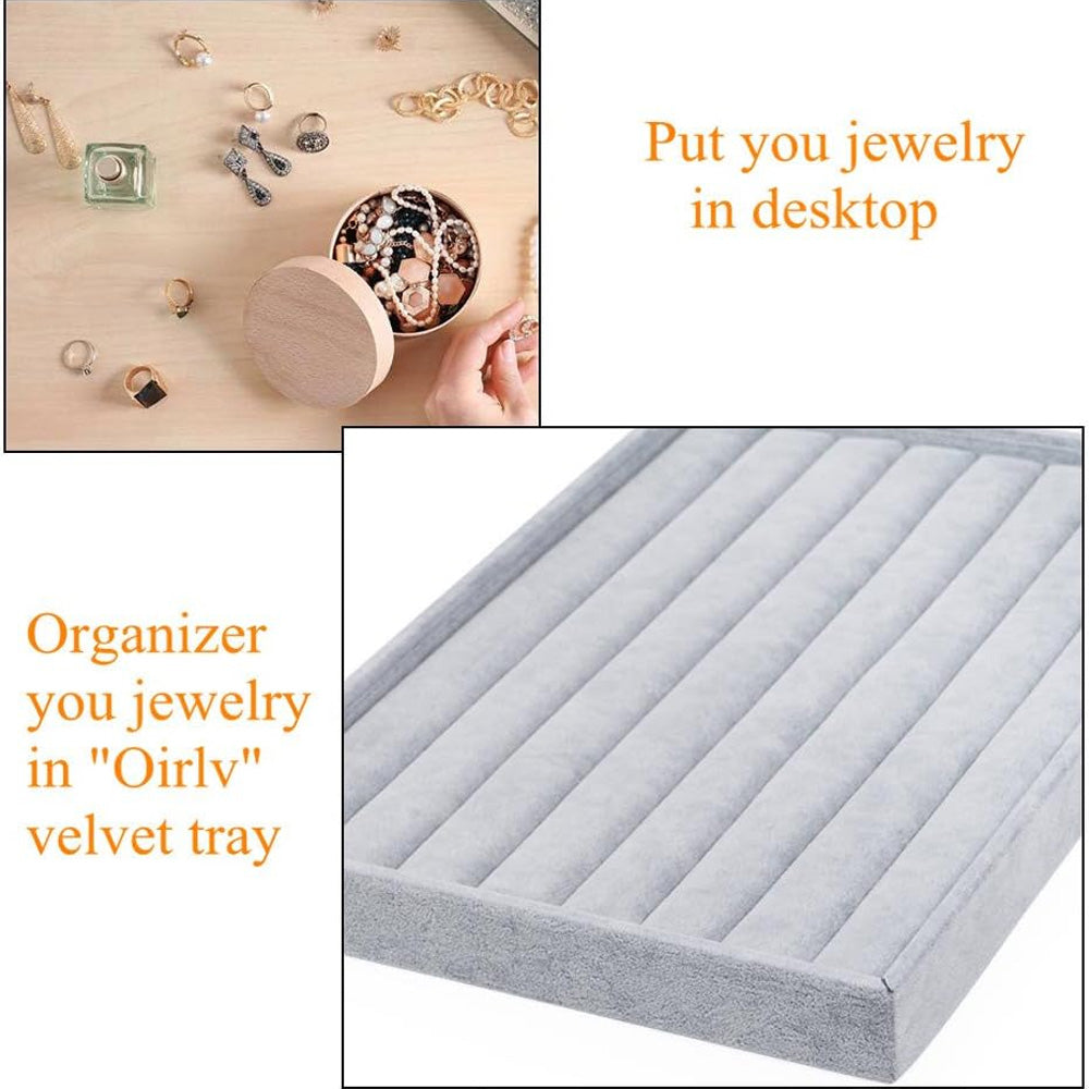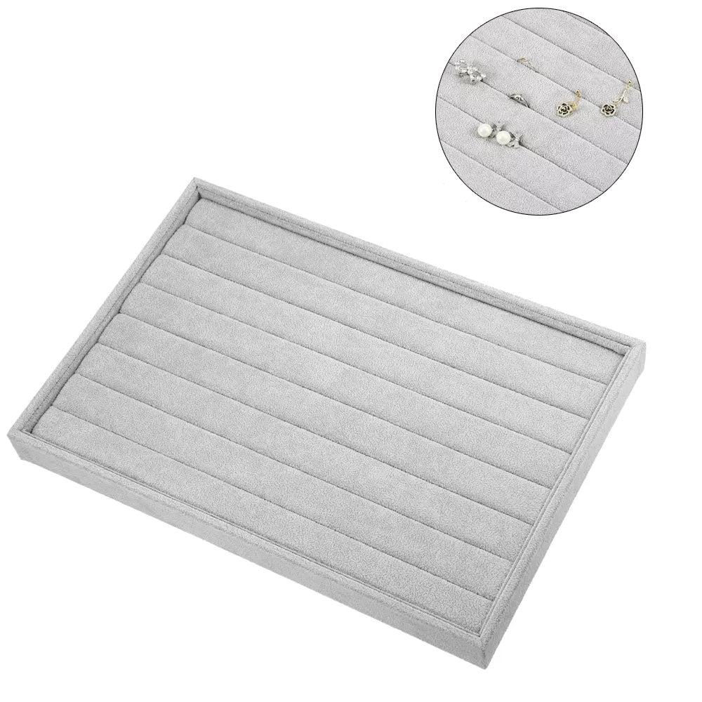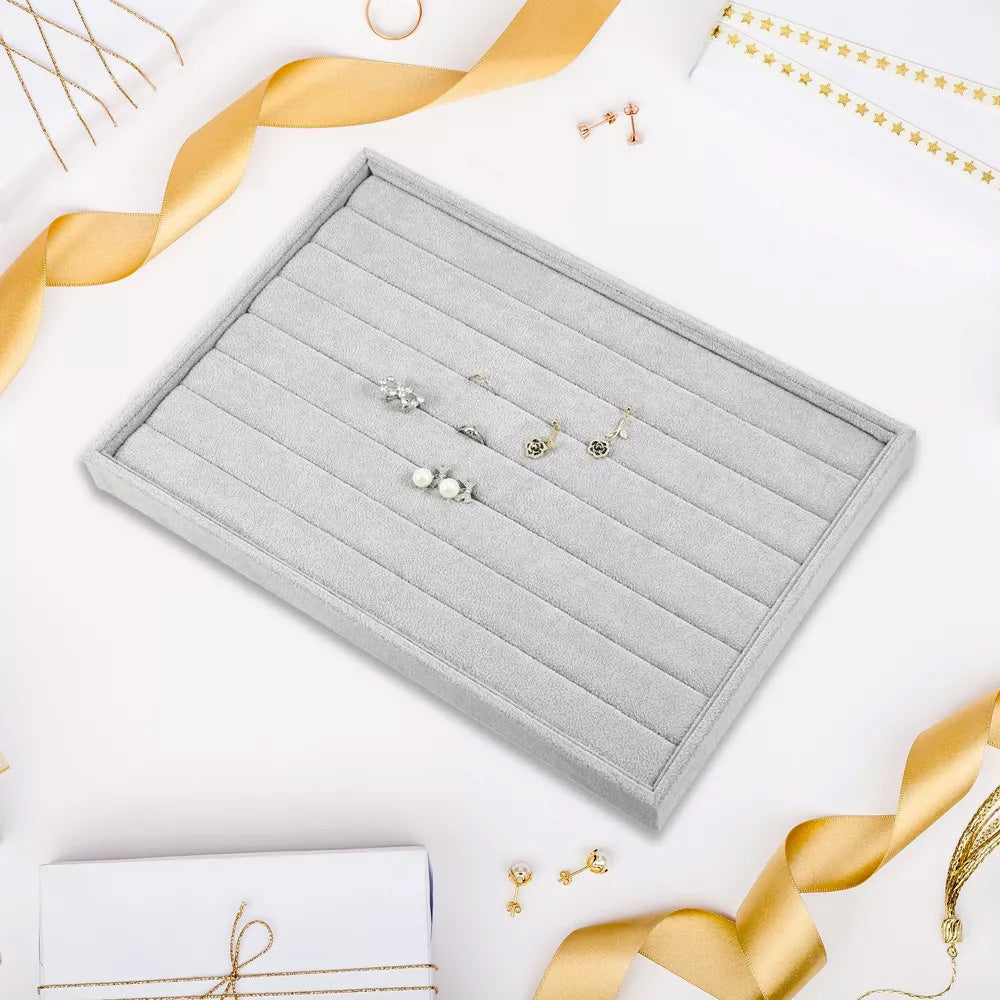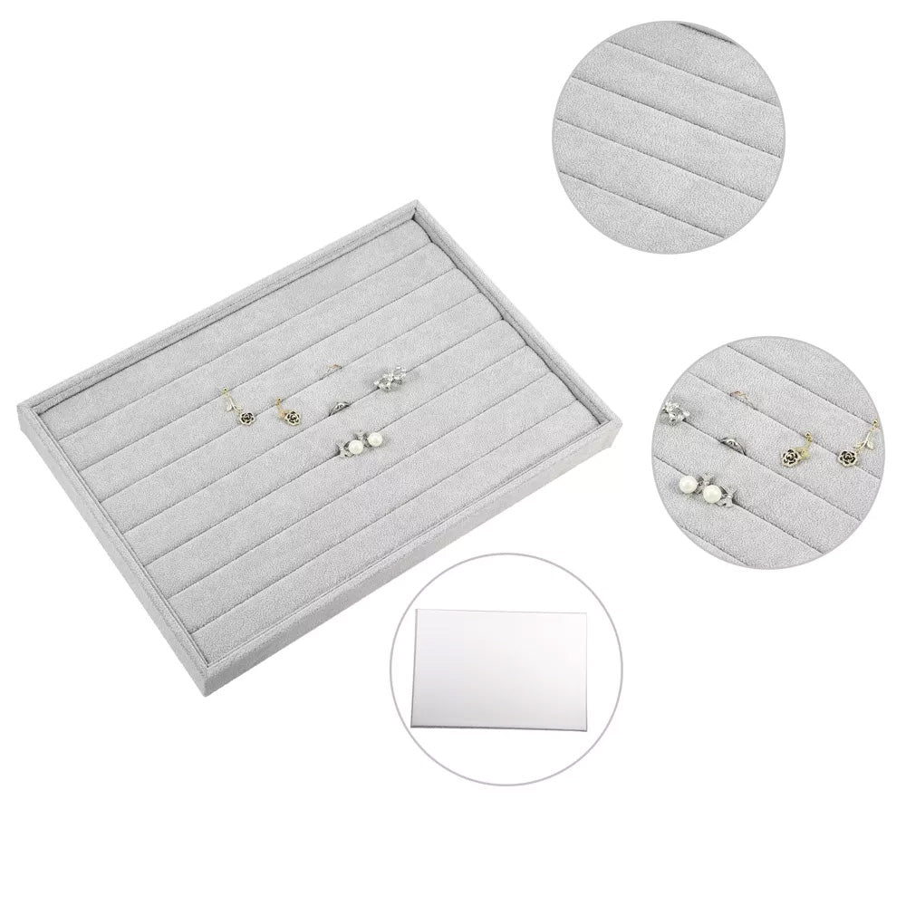صينية عرض مجوهرات فاخرة من المخمل باللون الرمادي