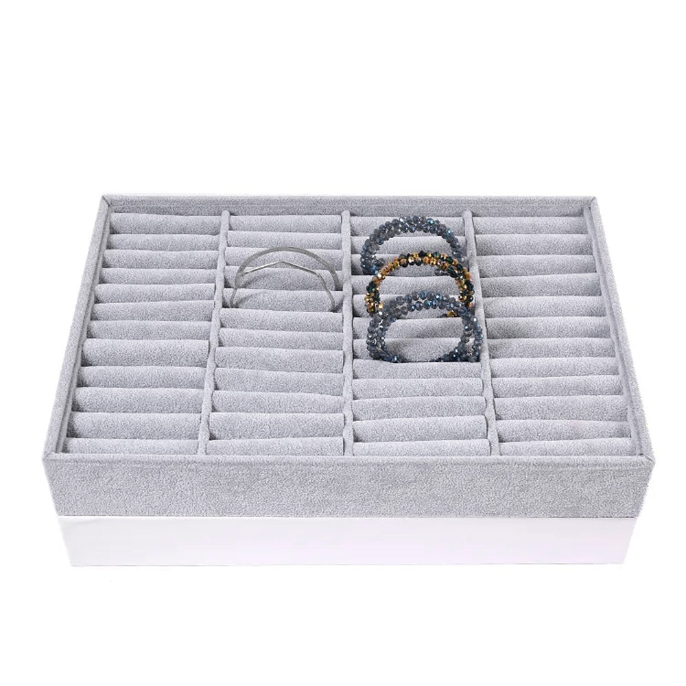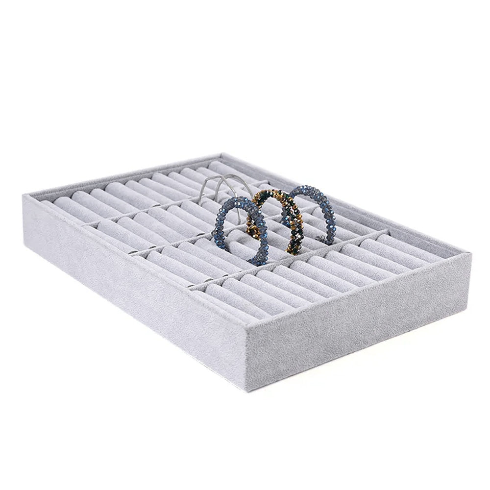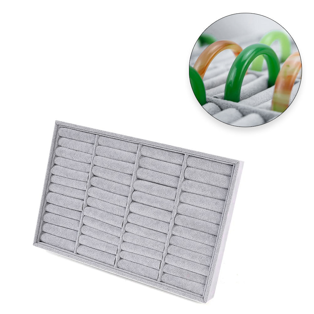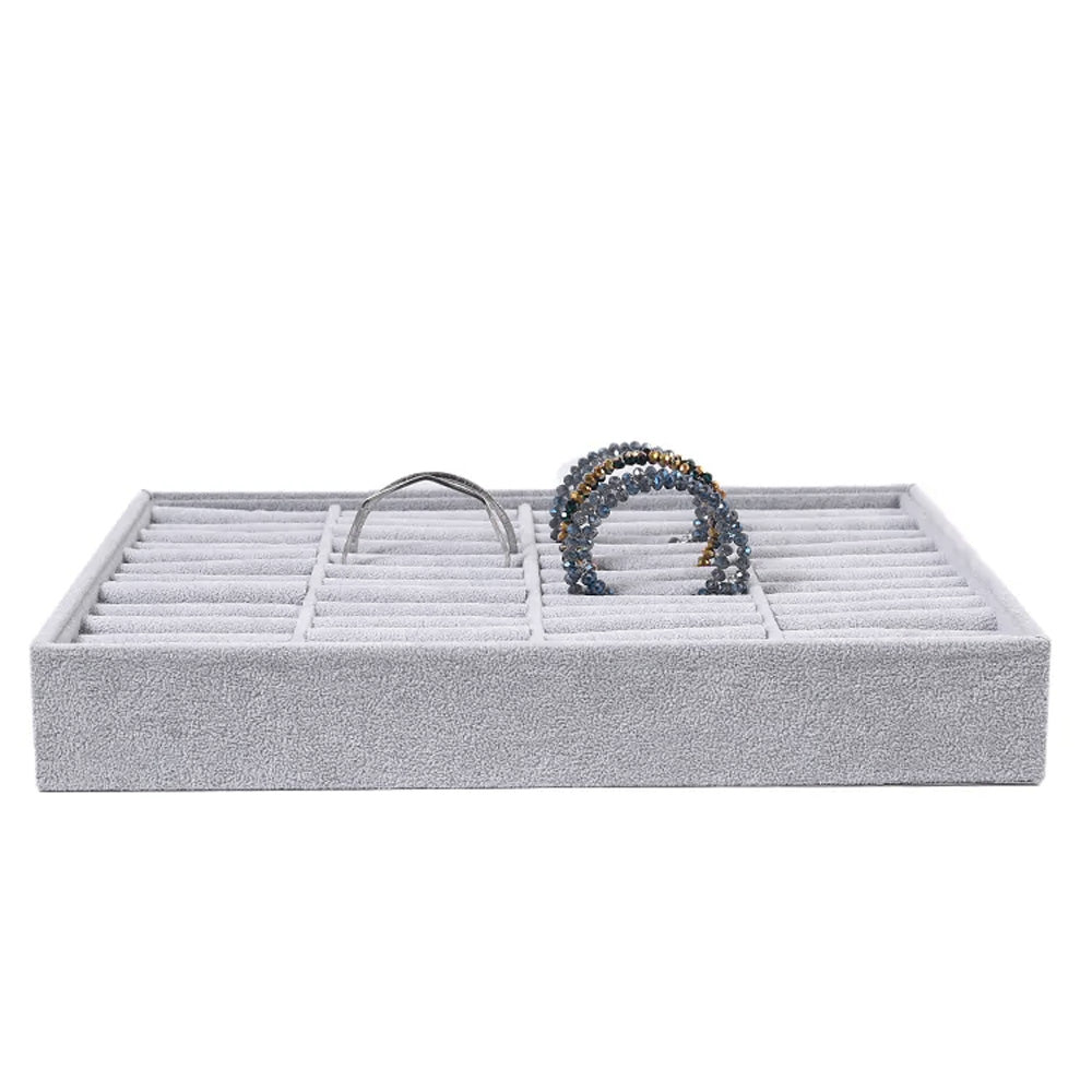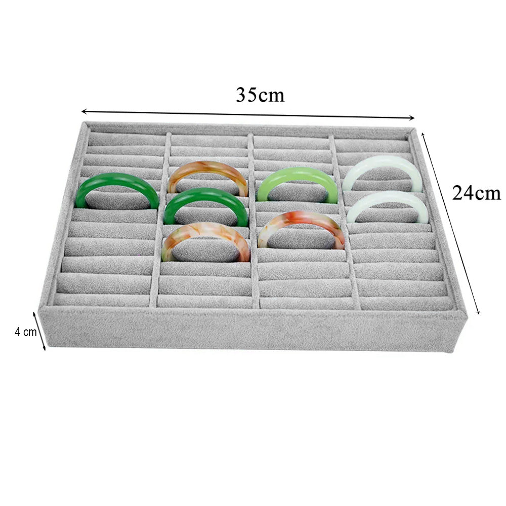 صينية عرض مجوهرات مخملية رمادية مكونة من 48 شبكة
