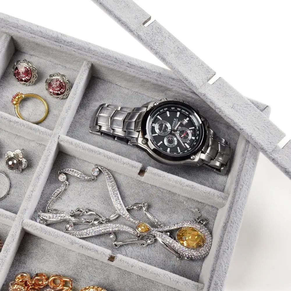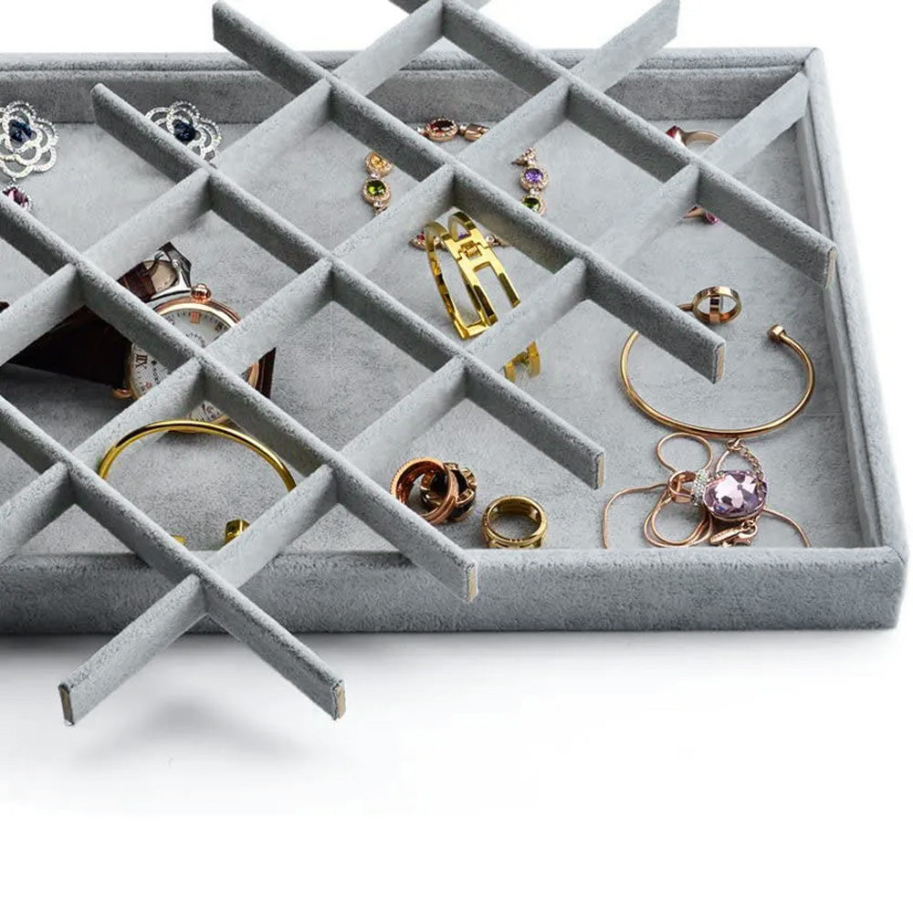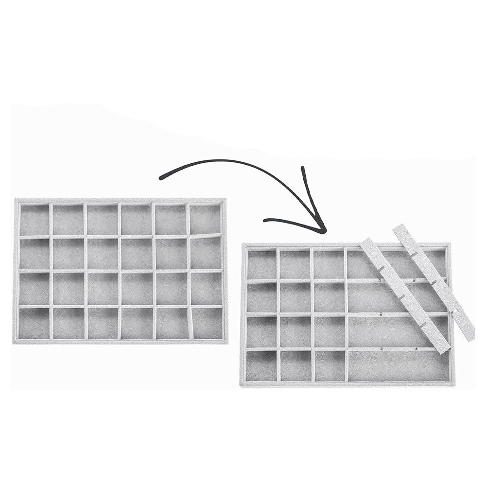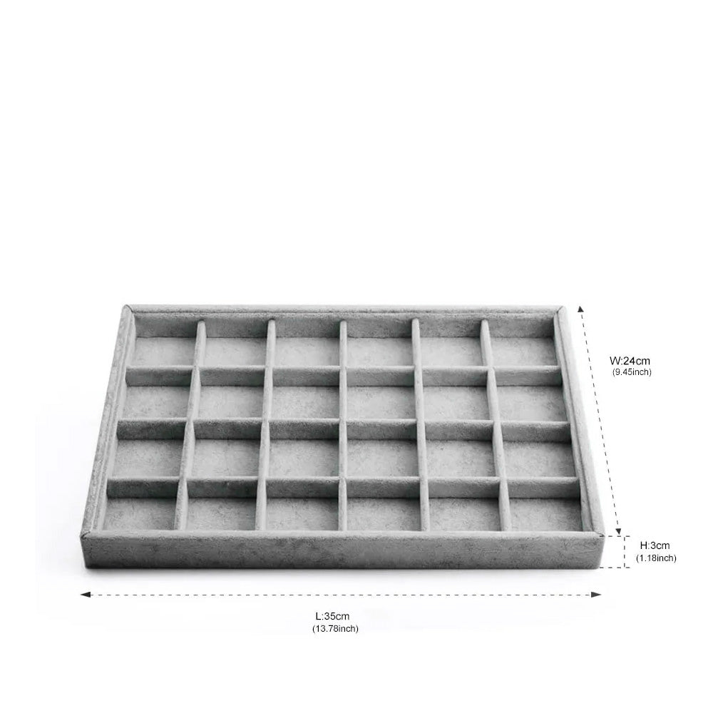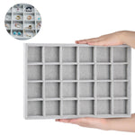 صينية مجوهرات قابلة للتكديس من المخمل الرمادي مكونة من 24 حجرة