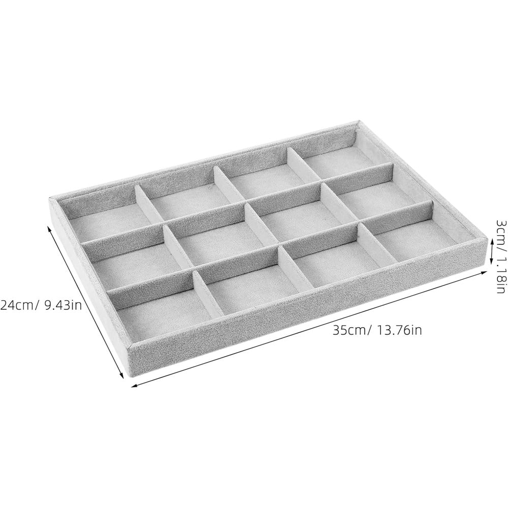💍[حجم صينية المجوهرات]: 35*3.5*24 سم / 13.8*1.4*9.4 بوصة، يمكن تقسيمها إلى 12 شبكة، كل شبكة 7*8 سم/ 2.8*3.1 بوصة. كافية لتلبية احتياجاتك.