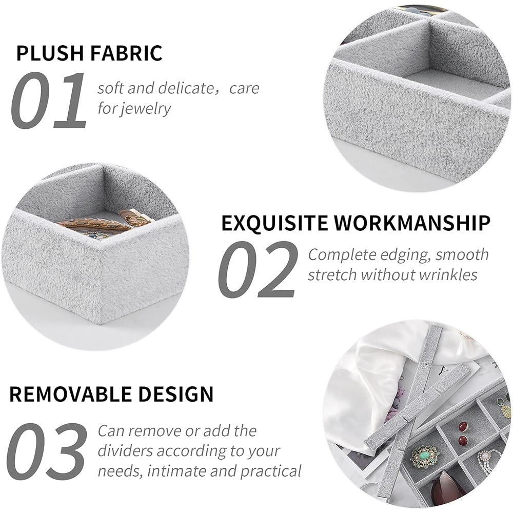{مادة عالية الجودة]: صينية المجوهرات منظمة للمجوهرات مصنوعة من لوح مركب قوي ملتوي من مخمل فاخر مع مقسمات حجرة قابلة للإزالة. ناعمة الملمس وتحمي مجوهراتك من الخدوش. ناعمة الملمس وتحمي مجوهراتك من الخدوش.