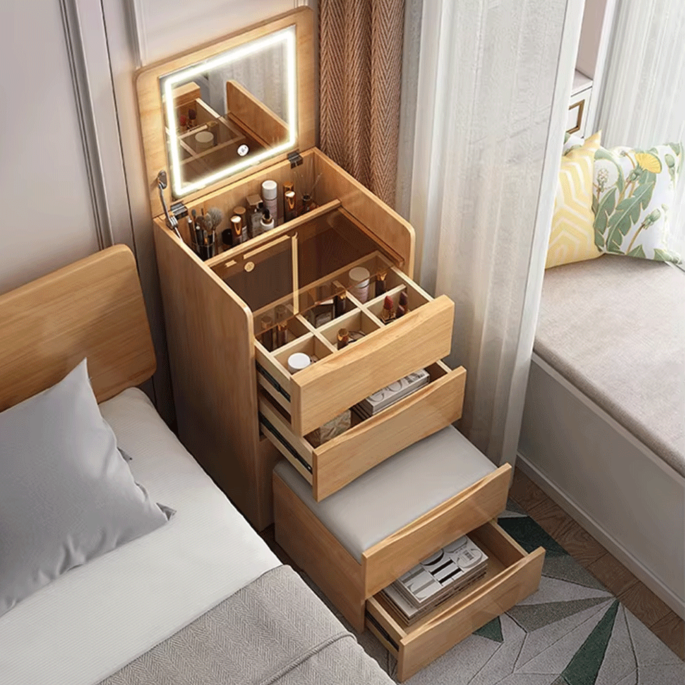 3. 【متعدد الوظائف】: مع تصميم مرآة قابلة للطي، يمكن أيضًا استخدام مكتب الزينة متعدد الاستخدامات هذا مع مرآة وأضواء كمكتب دراسة أو خزانة بجانب السرير، مما يزيد من فائدة المساحة في غرف النوم الصغيرة أو شقق الاستوديو.