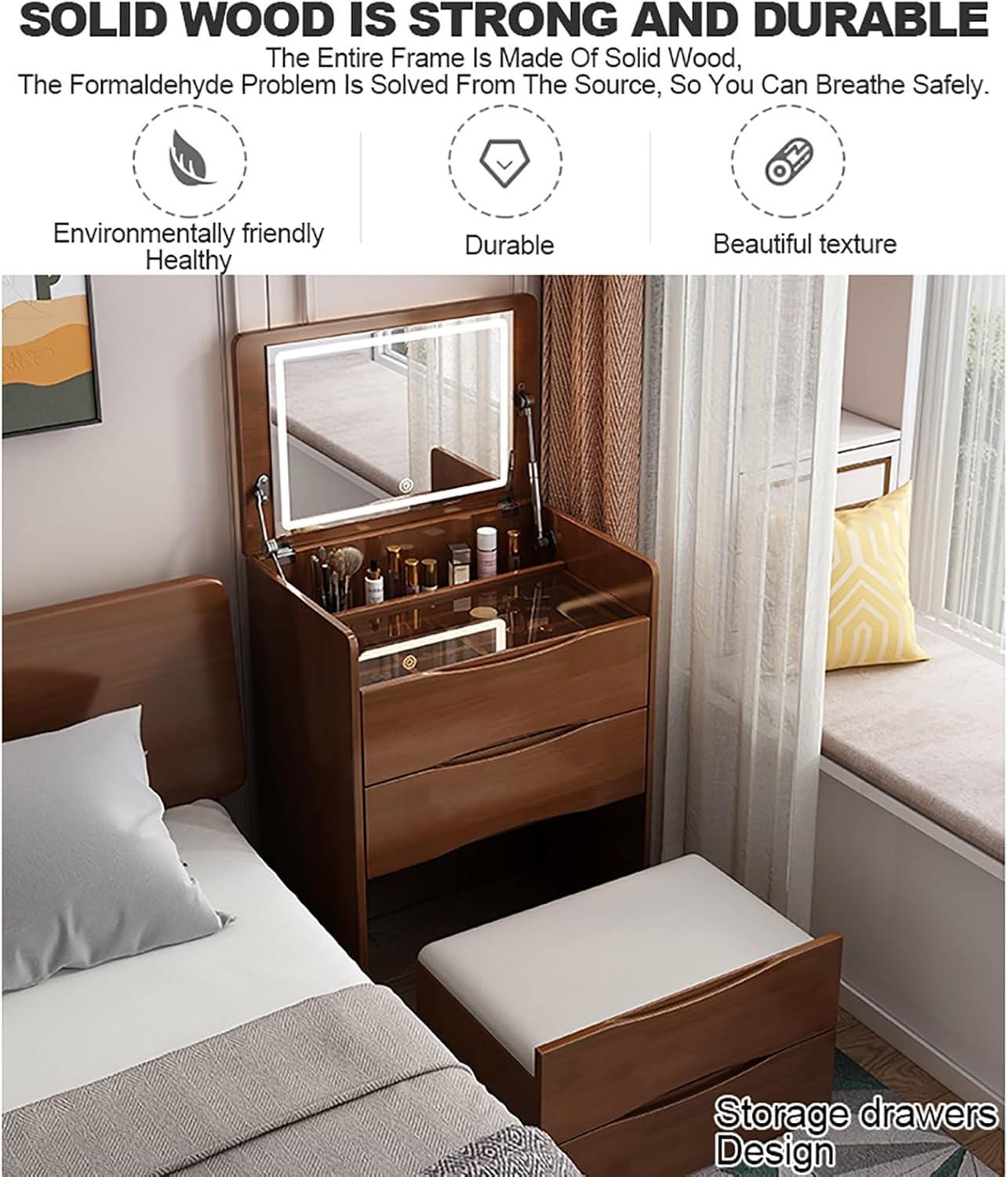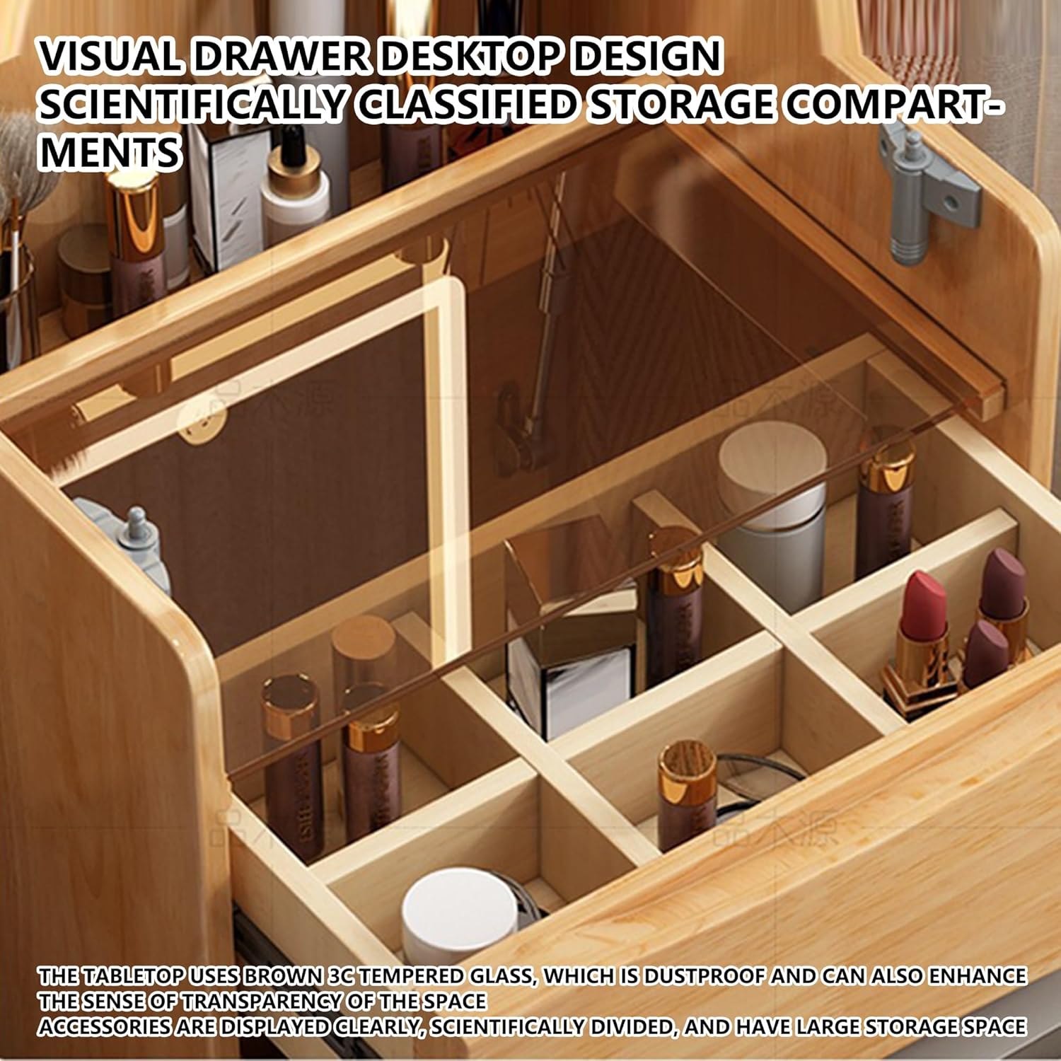 5. 【رضا العملاء】: توفر طاولة الزينة ذات الغطاء القابل للطي حلاً أنيقًا وعمليًا لروتين جمالك اليومي. اجمع بين الوظيفة والأناقة في منزلك مع طاولة الزينة وخزانة السرير متعددة الاستخدامات.