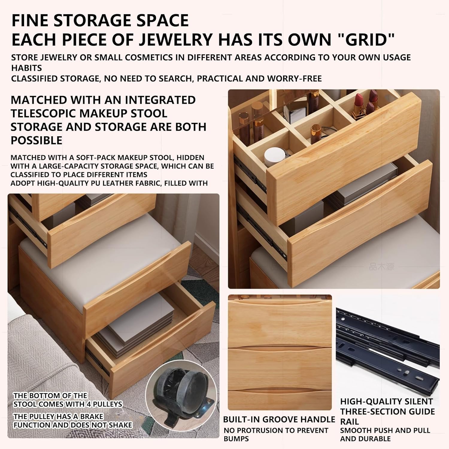 4. 【هيكل عالي الجودة】: مصنوع من مواد خشبية صلبة فاخرة، طاولة الزينة هذه مع مقعد متينة ومتينة، مما يضمن الاستخدام طويل الأمد وإضافة أنيقة لأي ديكور غرفة نوم.