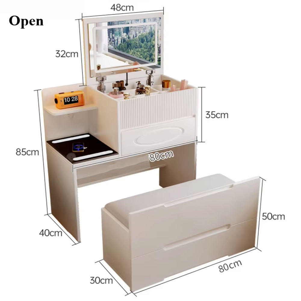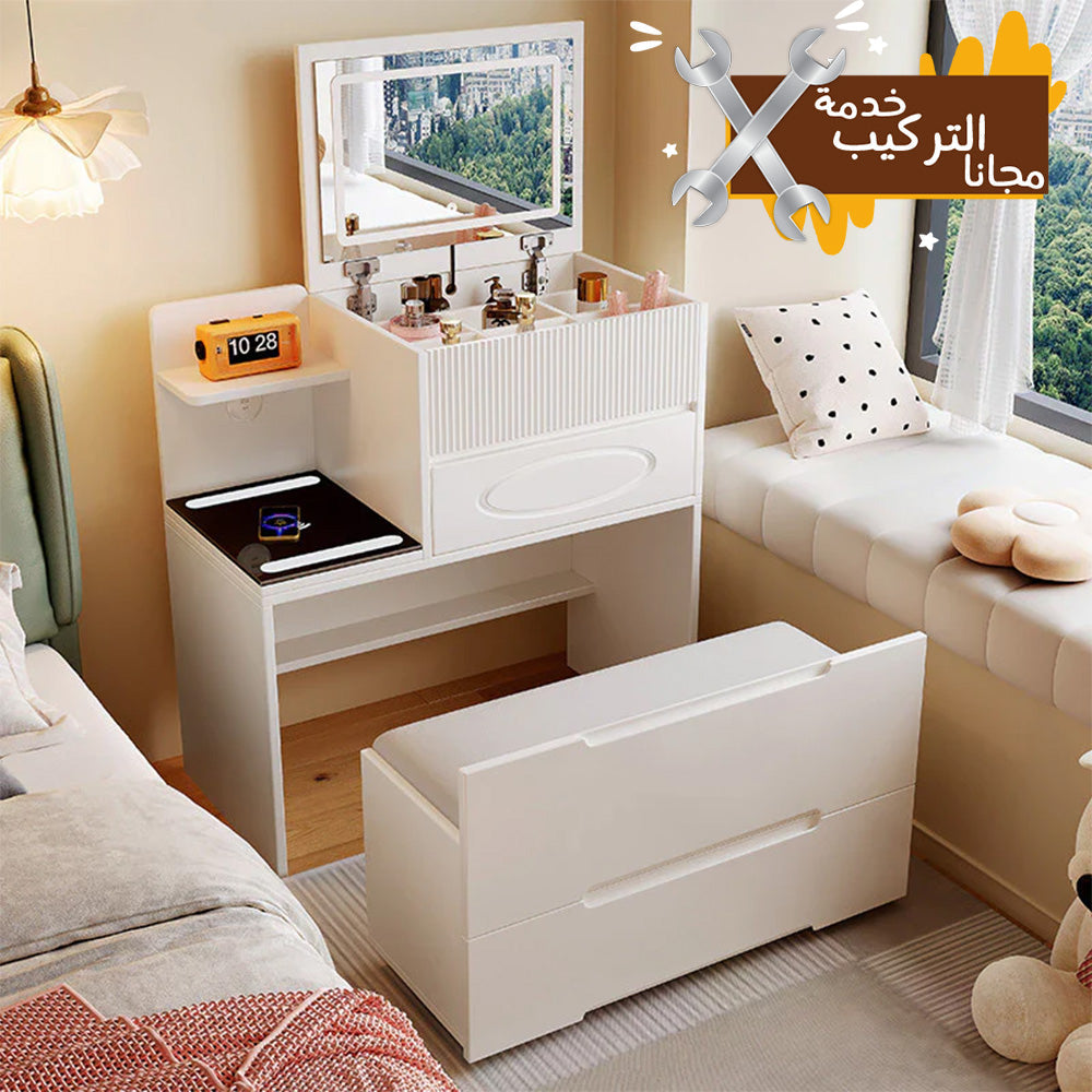 - صناعة فاخرة: مصنوعة من مواد ممتازة وطبقة نهائية من الورنيش أنيقة، طاولة الزينة مع الأمير والأضواء ليست للتنفيذ، بل هي مسئولة أيضًا. تتميز طاولة الزينة بزوايا وألواح كاملة لمسة من التراث والأمان.