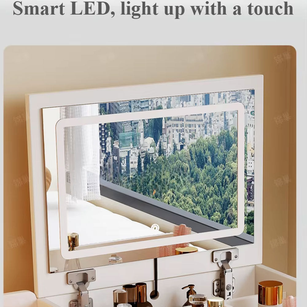 - مرآة ذكية LED: مرآة الزينة مع الاستمتاع بإضاءة الجيل الجديد لروتين المكياج الخاص بك مع مستويات السطوع مرآة لامعة قابلة للتعديل لمرآة LED مدمجة. زينة ذكية بتعتيم مرآة LED ثلاثية المستويات، تضيء بلمسة رئيسية، للحاجة الأساسية للاهتمام بمختلف أنواعها. مكتب الزينة مع الأمير والأضواء يحصل على مظهر لا تشوبه شائبة في كل مرة مع متطلبات الإضاءة.