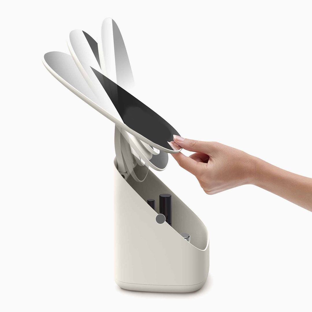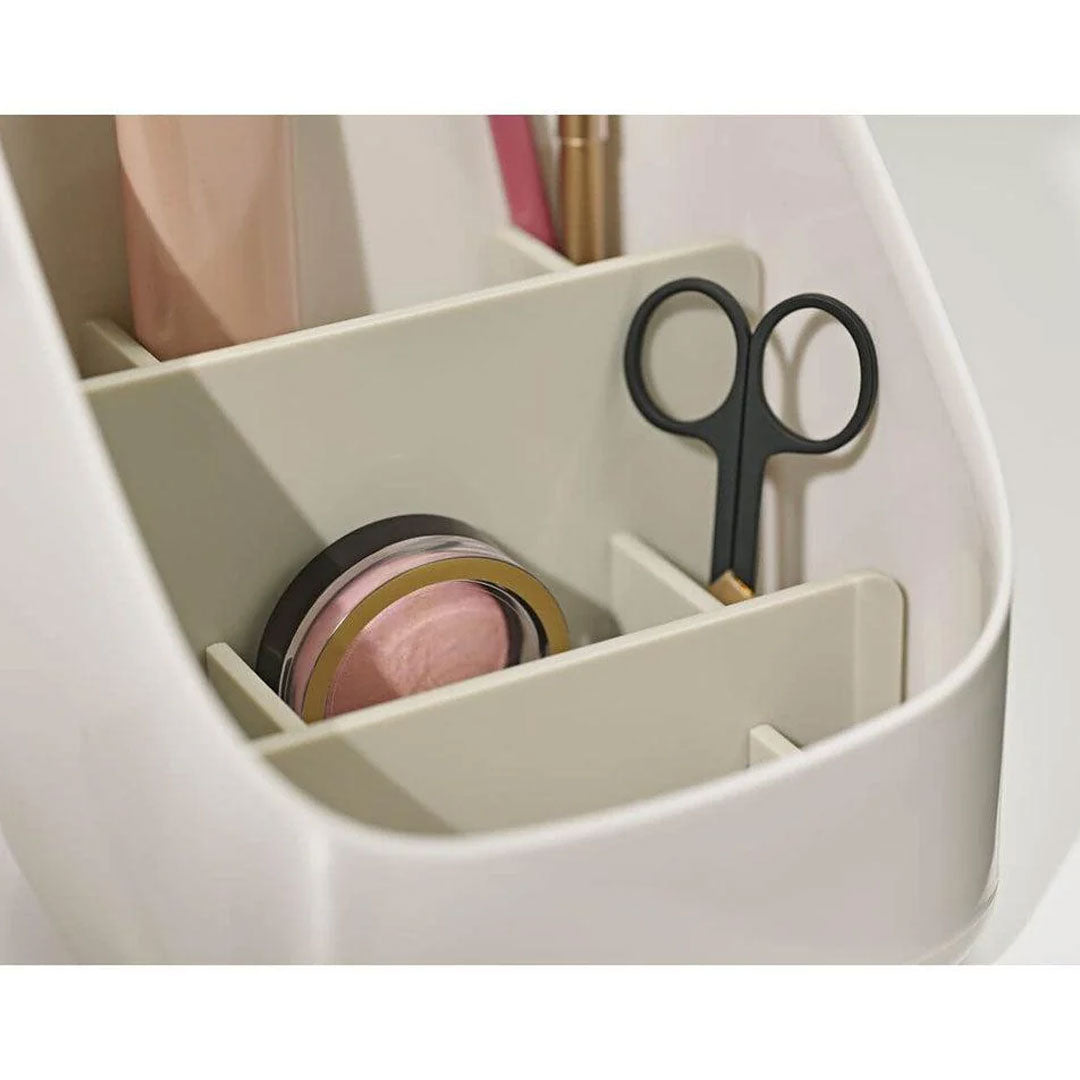 يجمع هذا التصميم بين العديد من الهيئات الخاصة بالمكياج في وحدة واحدة مدمجة. فهو يتميز بمرآة كبيرة على شكل مهارات ذكية ورؤية واسعة لوجهك ورقبتك، بالإضافة إلى وسائل تخزين للعمل بشكل أكثر دقة وتنوعًا.