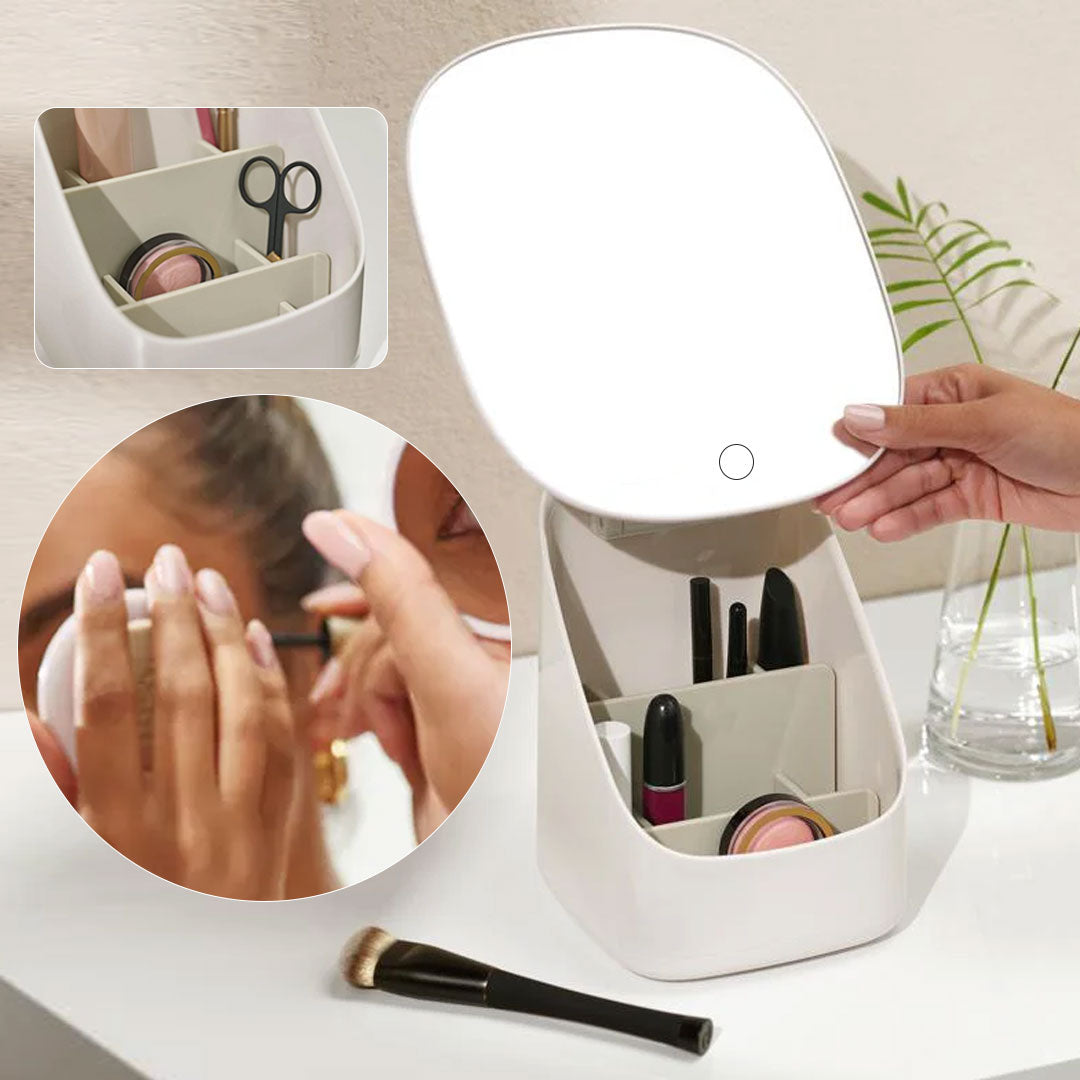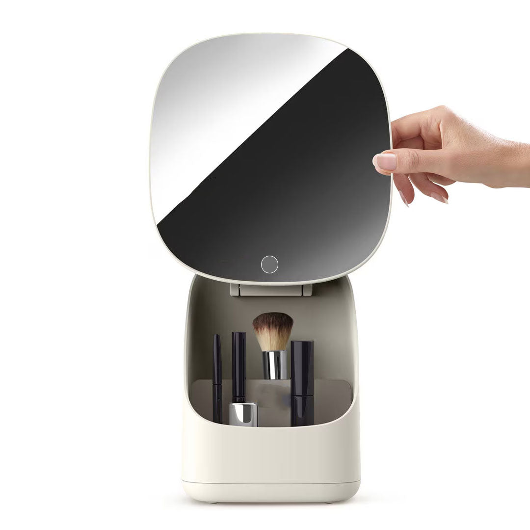 مع منظم مستحضرات التجميل مرآة قابلة للشحن تعمل باللمس