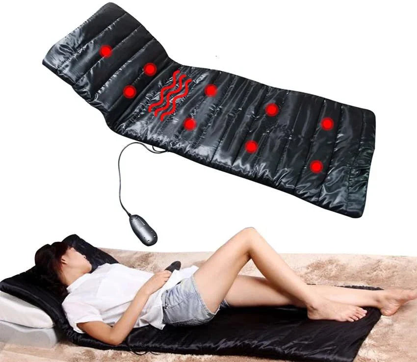 مرتبة تدليك كهربائية متعددة الوظائف من سرير تدليك كامل للجسم للاستخدام المنزلي في العيادة وظيفة ساخنة 9 نقاط تدليك اهتزازية جهاز تدليك محمول (أسود)