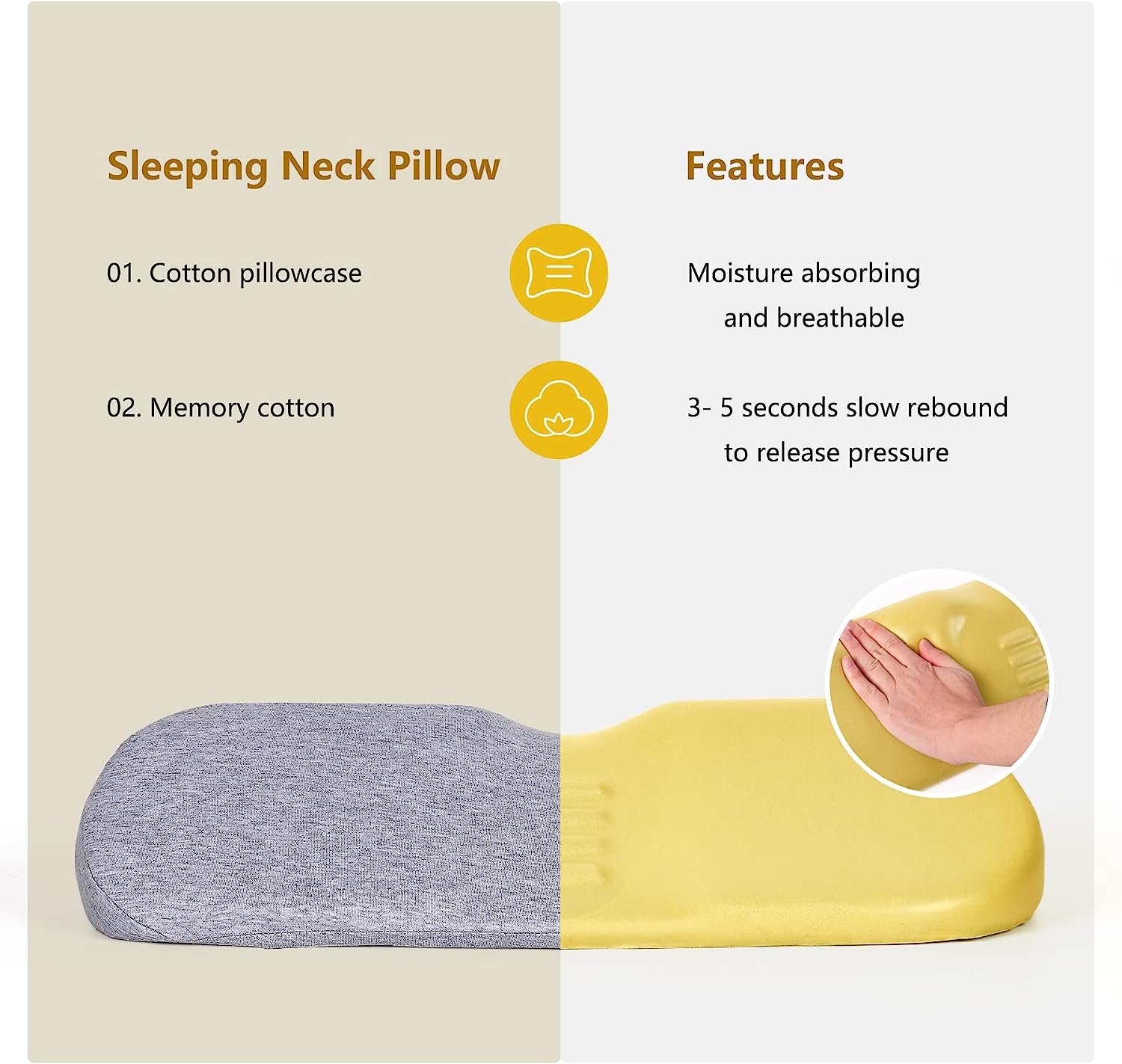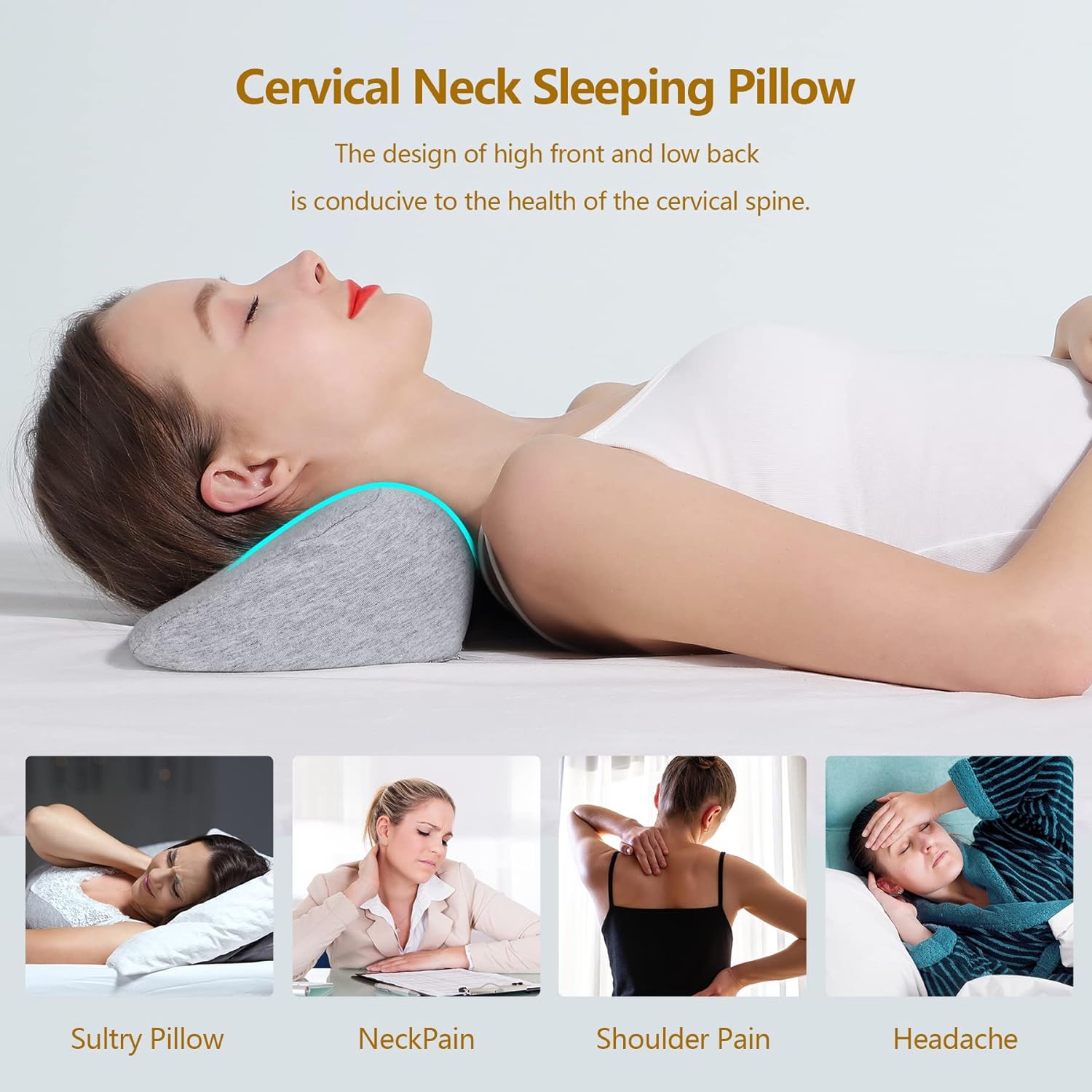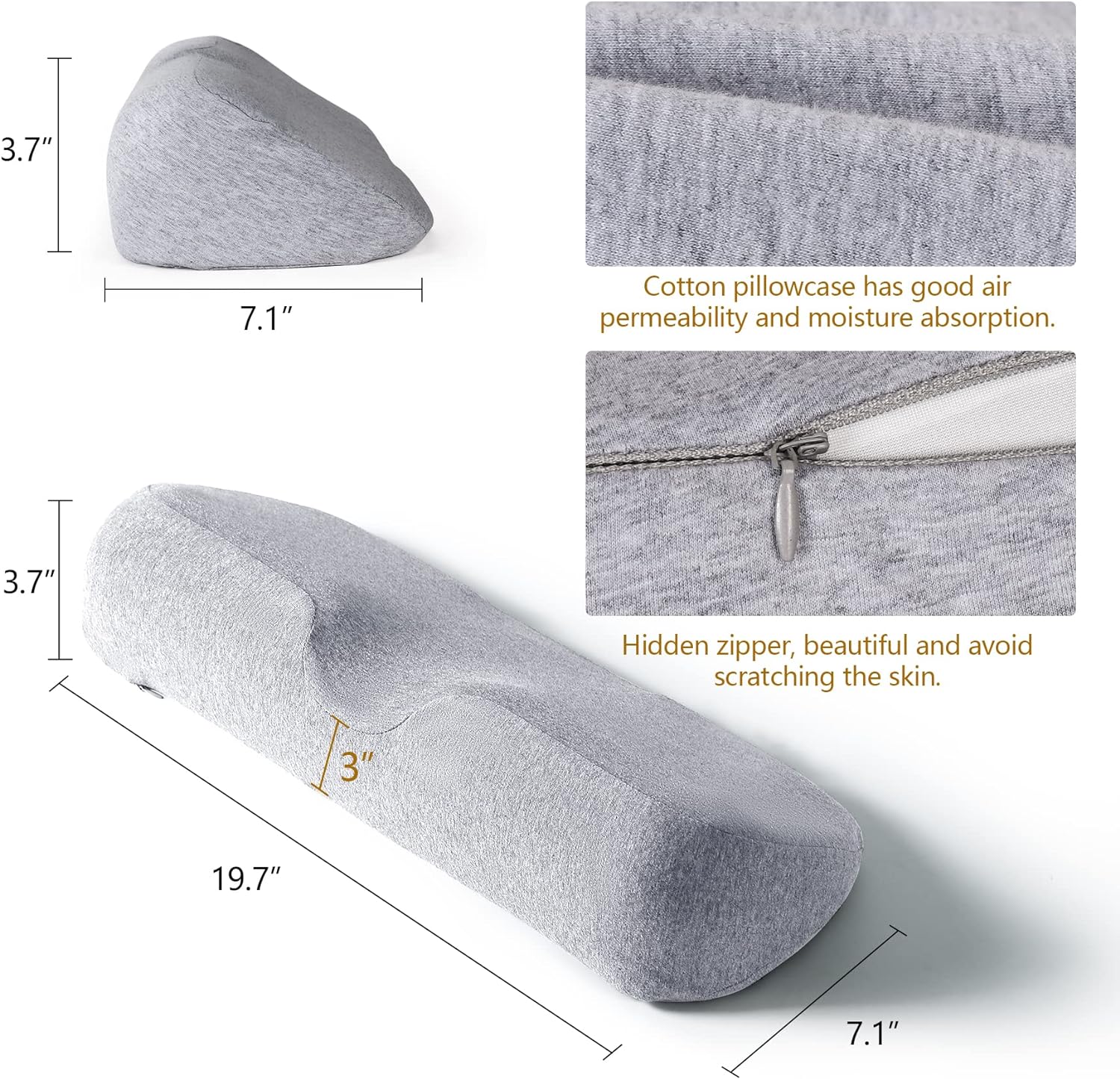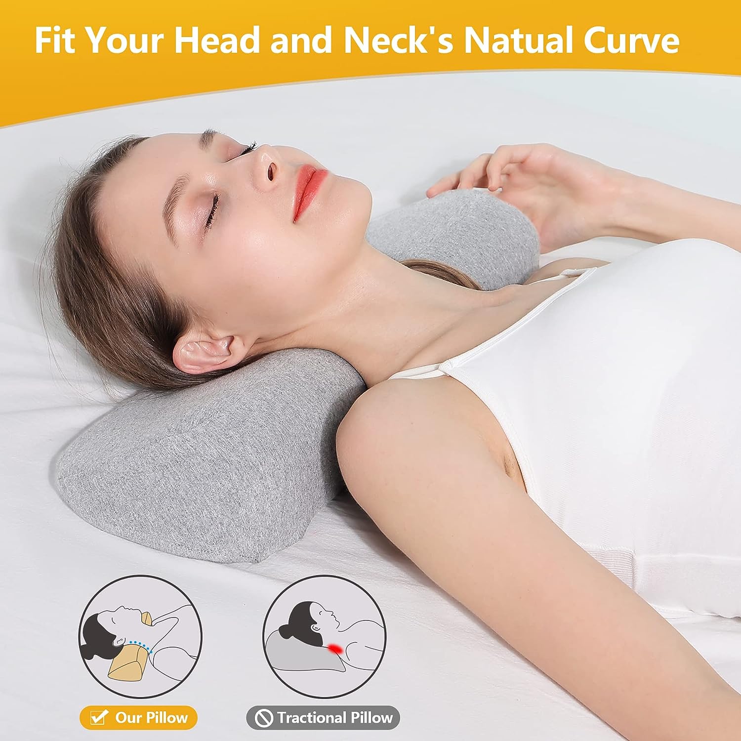 وسائد عنق لتخفيف الآلام أثناء النوم ، وسادة تقوية الرقبة ميموري فوم لتخفيف الآلام القاسية ، وسادة دعم الرقبة وسادة لفة الرقبة لوسادة السرير (رمادي فاتح)منتوج وصف