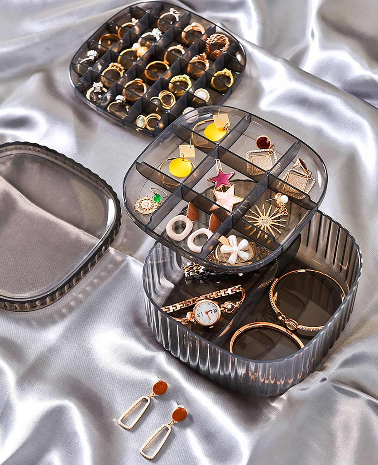 صندوق تخزين مجوهرات متعدد الطبقات ، أقراط قابلة للإزالة أساور مجوهرات صندوق تخزين سطح المكتب ، صندوق خاتم قلادة متعدد الوظائف كبير السعة للفتيات النساء (شفاف)