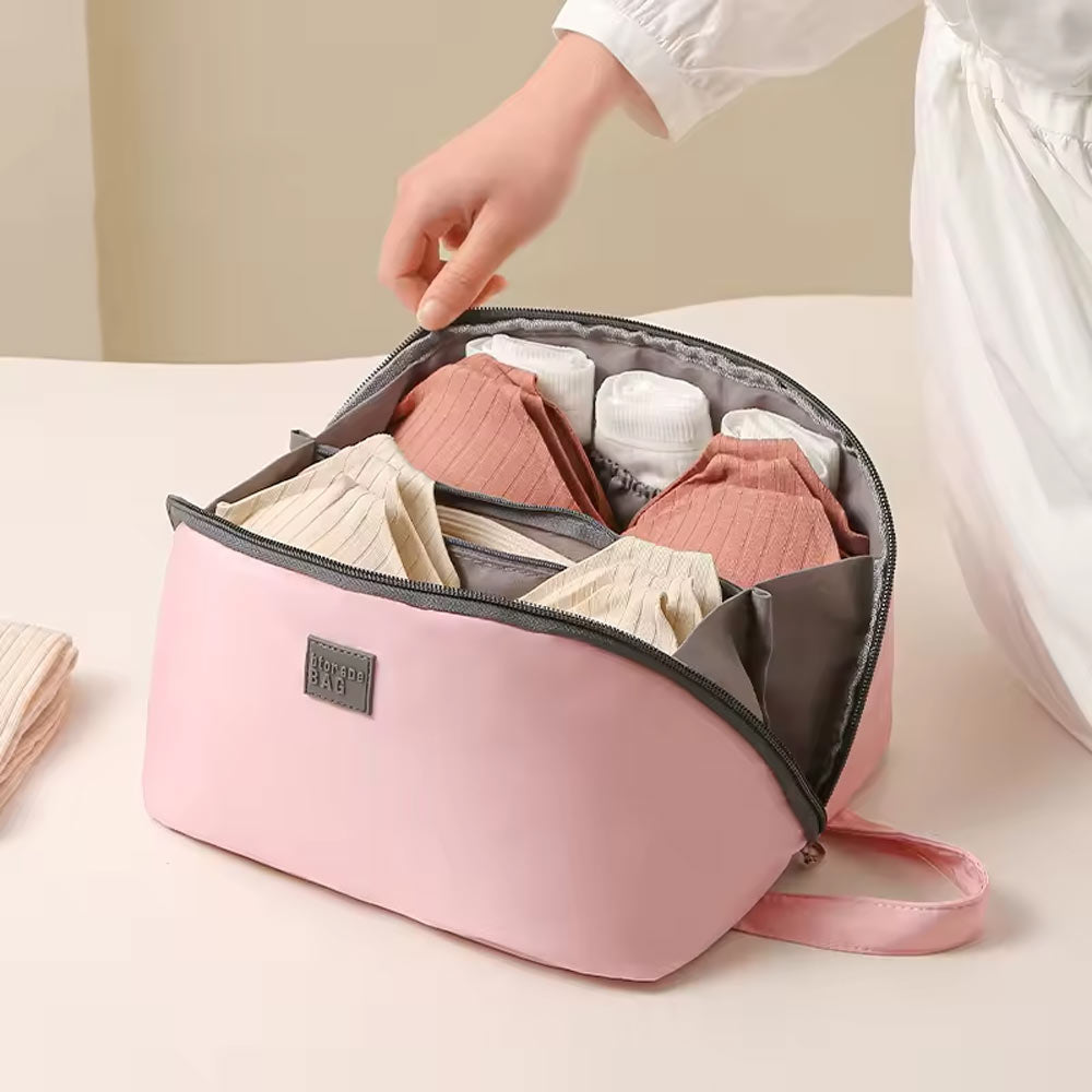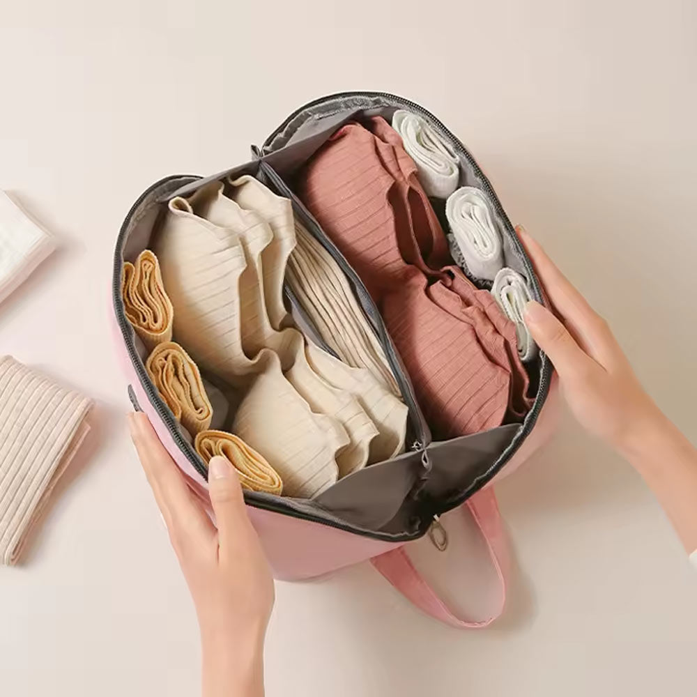حافظ على خصوصيتك: حقيبة الملابس الداخلية للسفر مثالية لتخزين الملابس الداخلية وحمالة الصدر والملابس الداخلية والجوارب وغيرها من العناصر الحميمة. مناسبة لرحلات العمل أو السفر، ويمكن استخدامها لمدة أسبوع إلى أسبوعين، ولا داعي للقلق بشأن التعرض للآخرين.