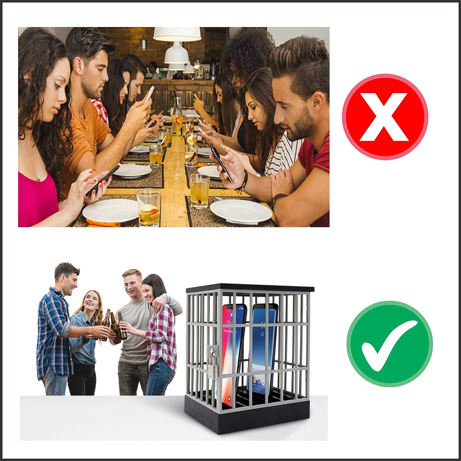 فكرة هدية ممتعة - سواء كان لصديقك أو زوجتك أو أطفالك، فإن مدمن الهاتف في حياتك سوف يضحك بشدة من لعبتنا المبتكرة الشهيرة. افصل واستمتع ببعض الشركات! في هذه الأيام كل منزل يحتاج إلى سجن الهاتف.