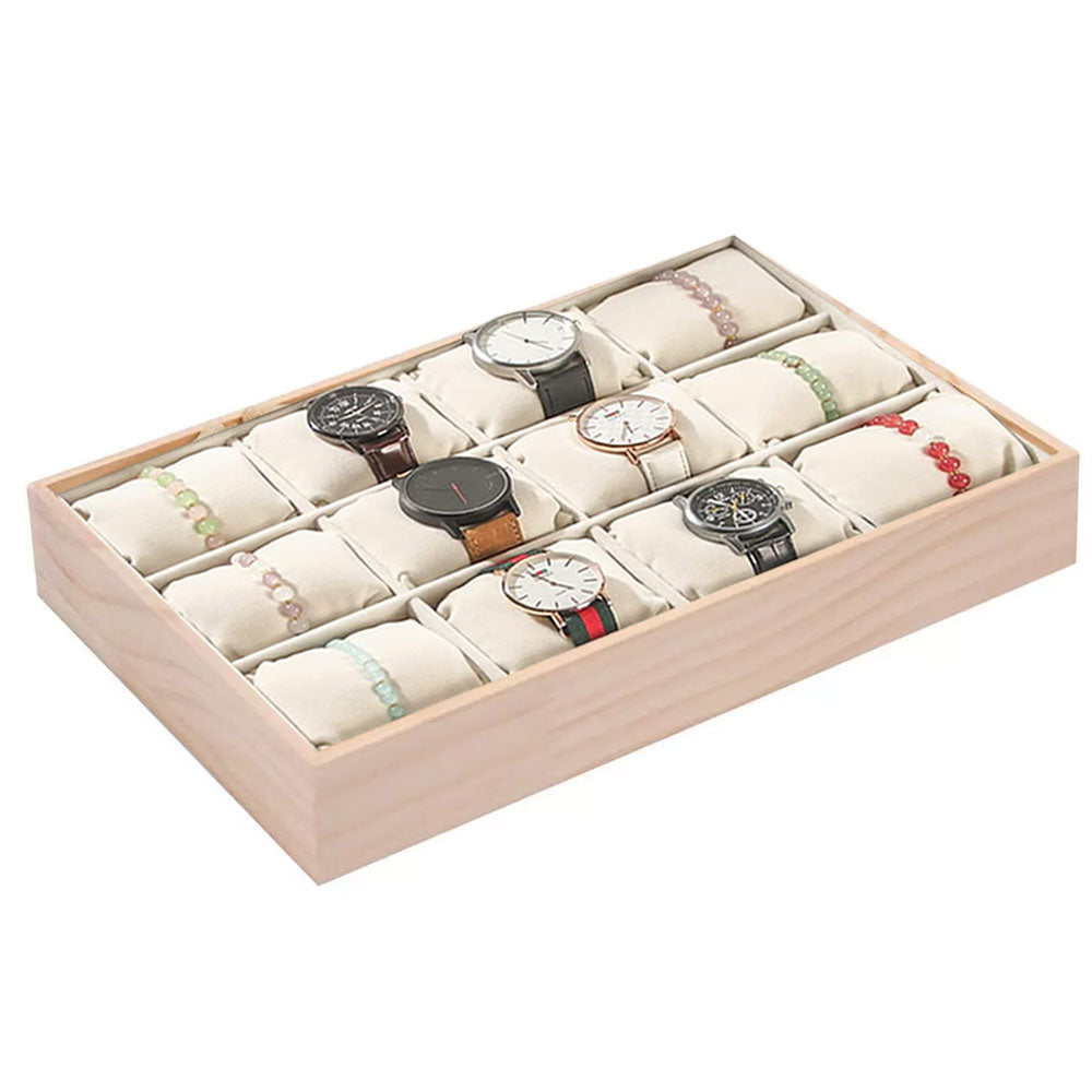 علبة تنظيم الساعة 12 فتحة، حافظة ساعة من الخيش ووسائد وسوار وحامل سوار عرض صندوق ساعة حافظة سوار للرجال والنساء