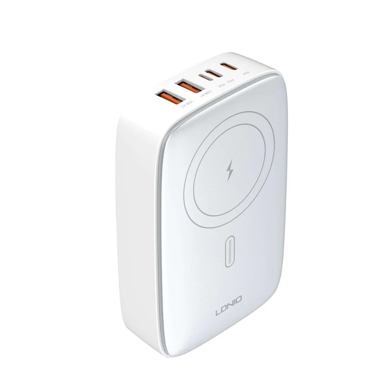 شاحن LDNIO PD 140W فائق السرعة + شحن لاسلكي 2 × USB-C + 1 × Lightning + 3 × محول منفذ USB-A يدعم شحن الكمبيوتر المحمول والكمبيوتر اللوحي وشاحن سطح المكتب اللاسلكي متعدد المنافذ Q4010