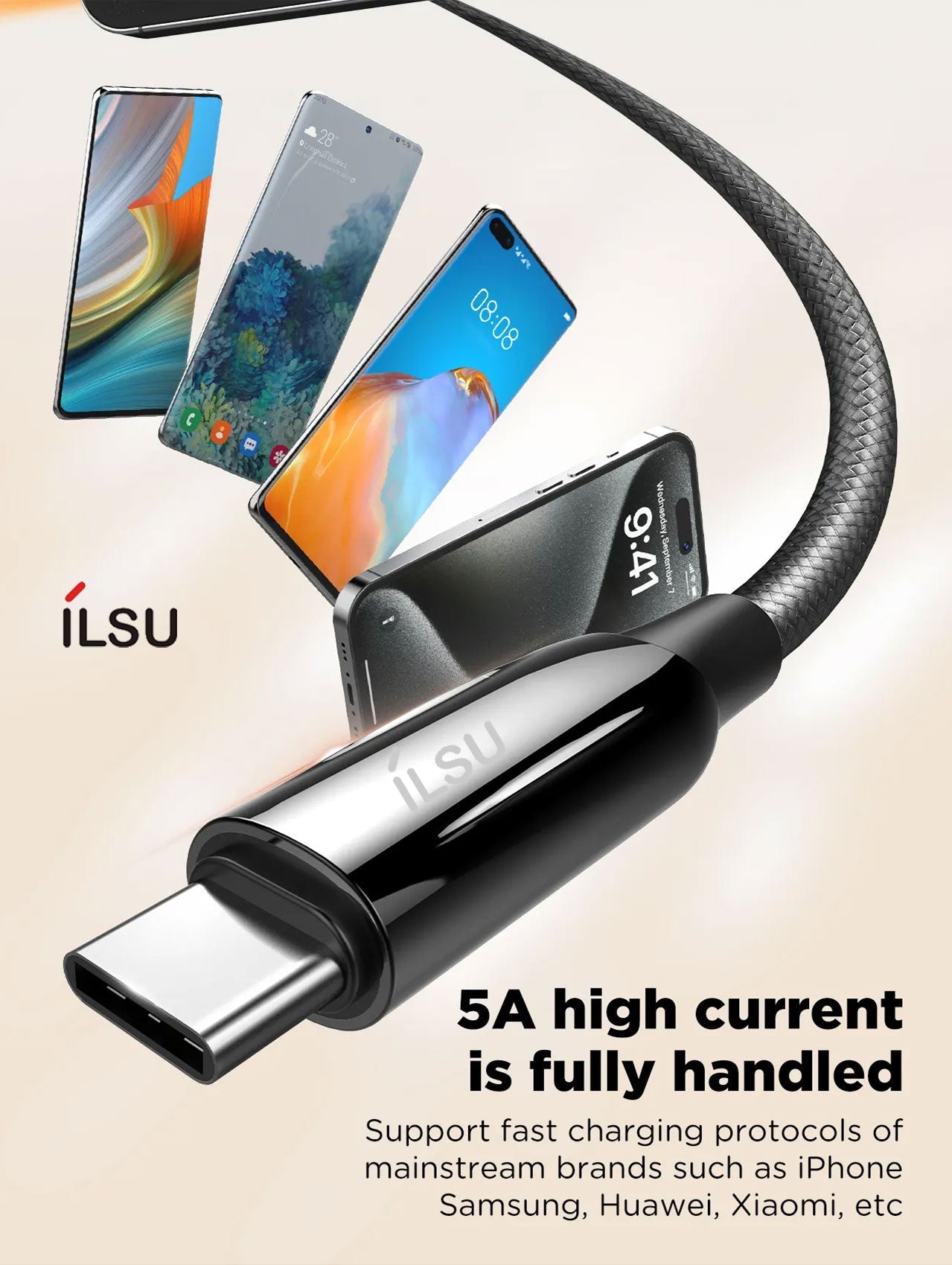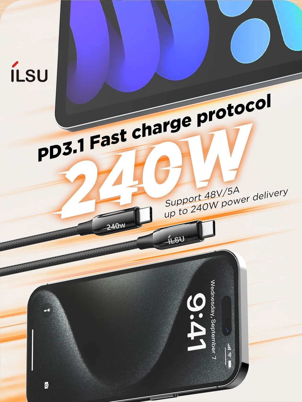 قدرة الشحن السريع: يدعم كابل SUL302-240W بروتوكول الشحن السريع PD3.1 عالي القدرة، مما يضمن شحنًا سريعًا وفعالًا لأجهزتك، بما في ذلك أجهزة iPhone وأجهزة Android.