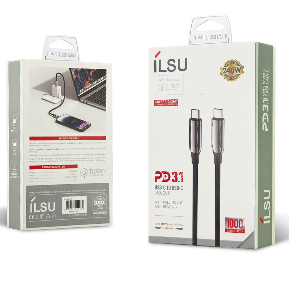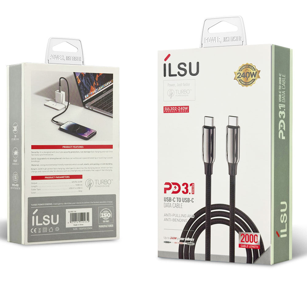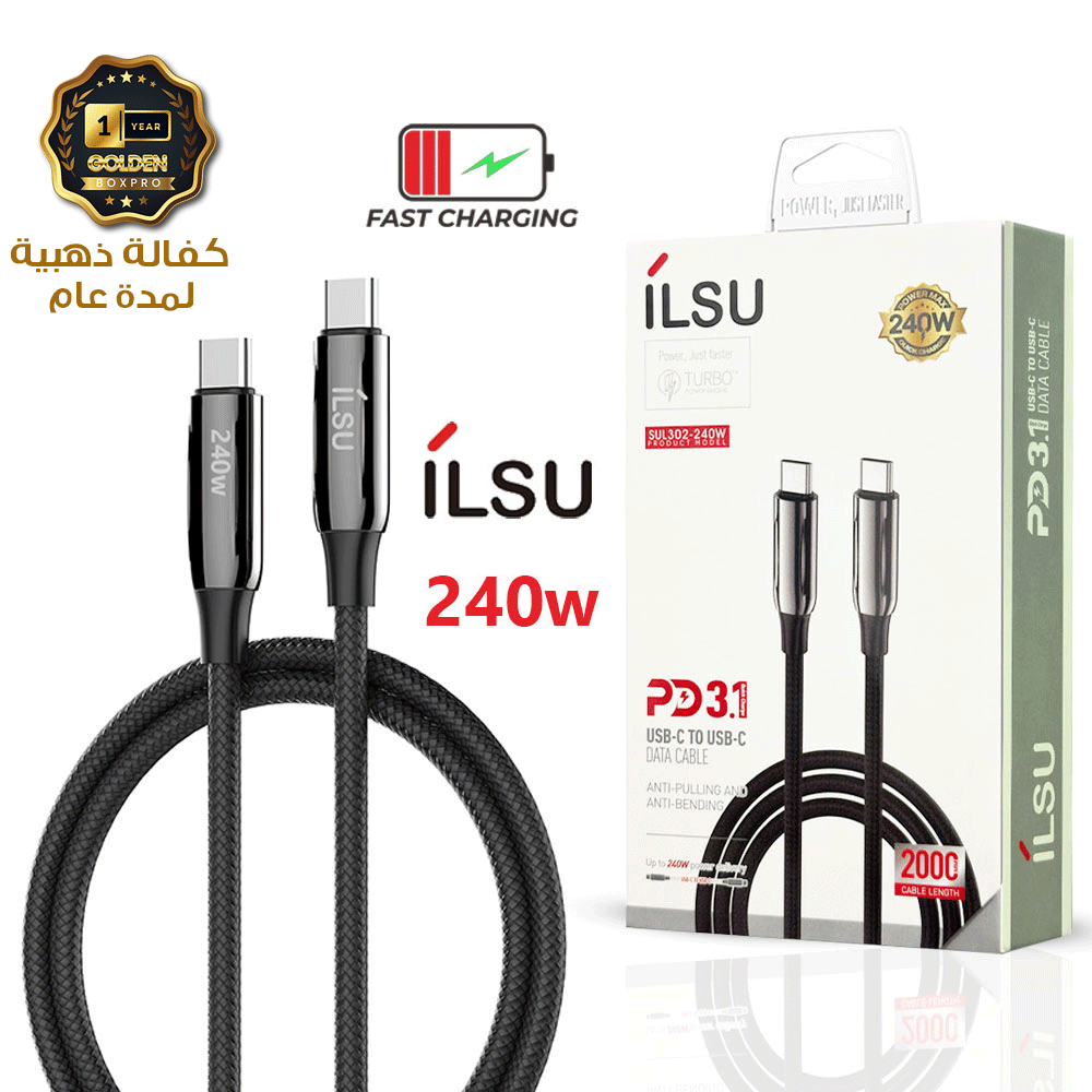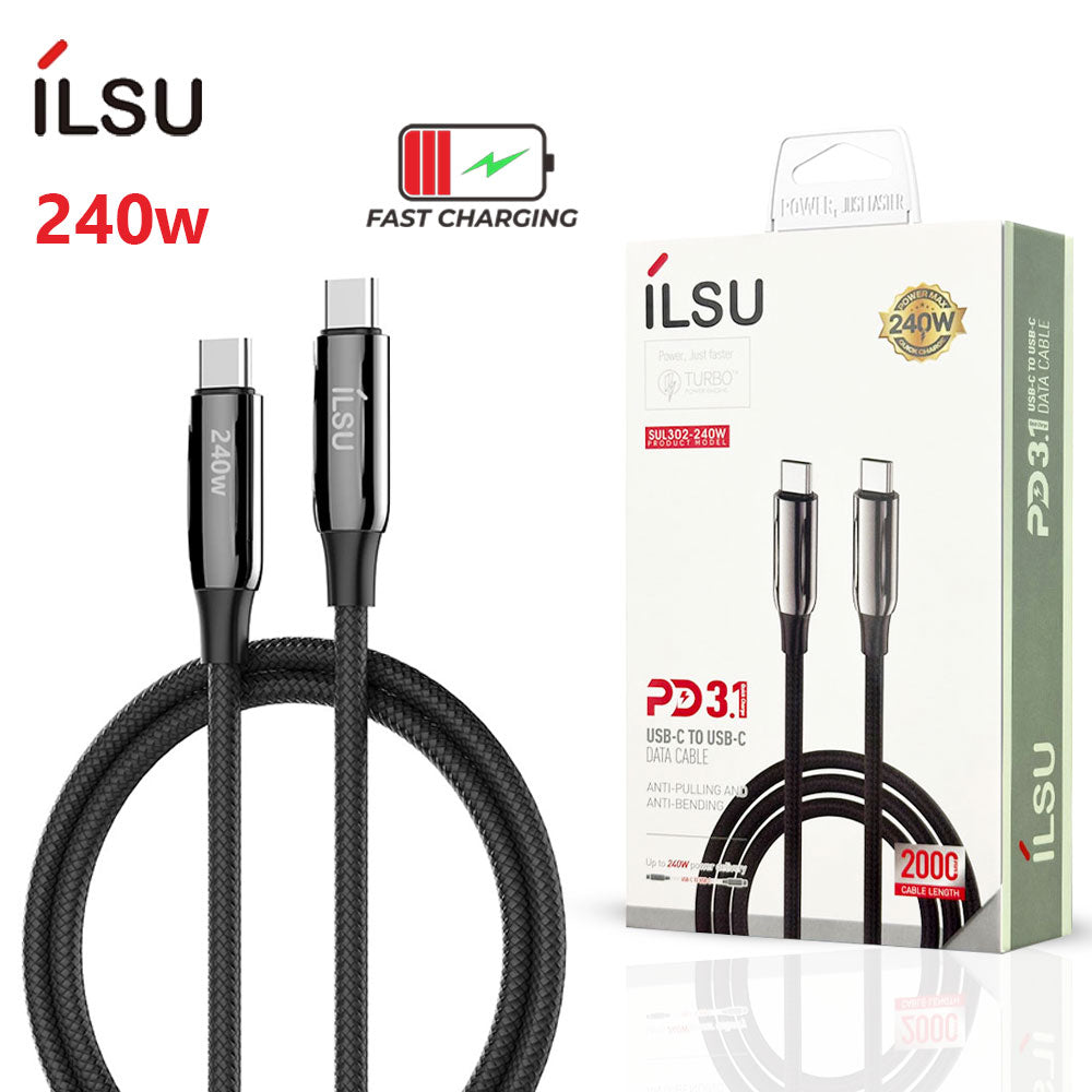 SUL302-240W | كابل شحن تايب سي الى تايب سي يدعم الشحن السريع ونقل البيانات بقوة 240 وات | بطول 1 متر و 2 متر من إيلسو