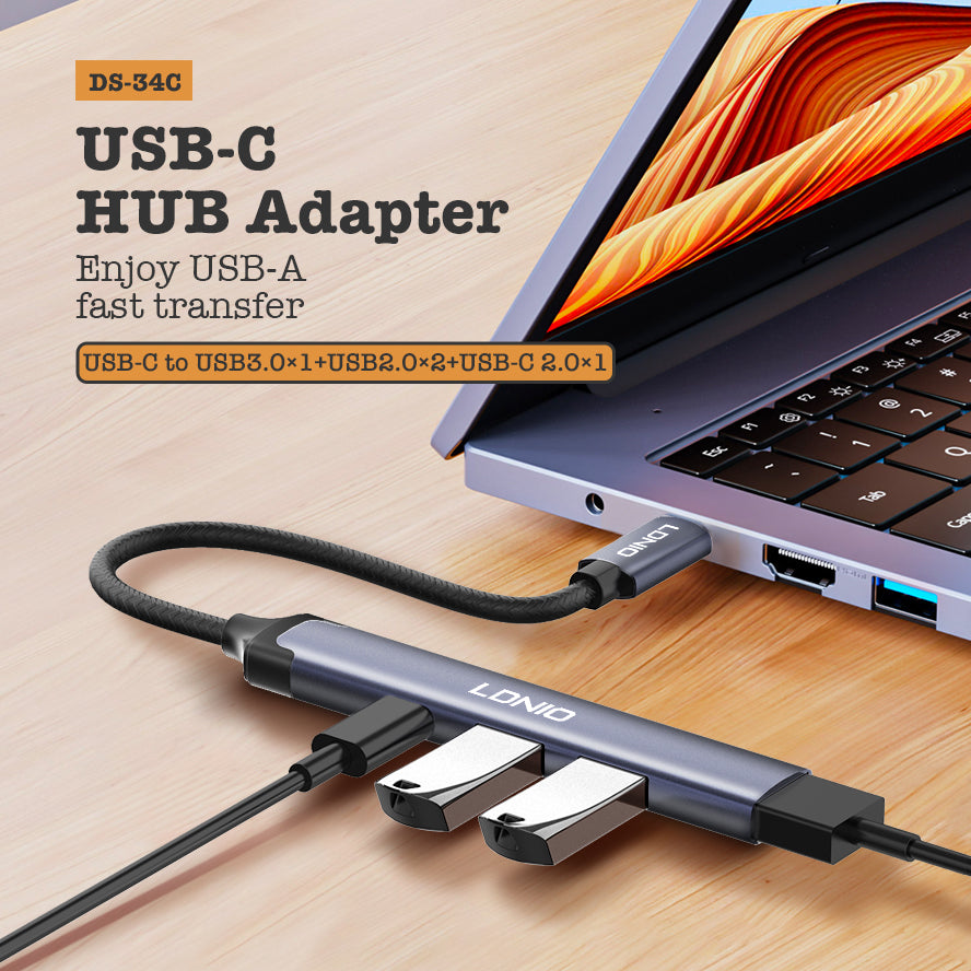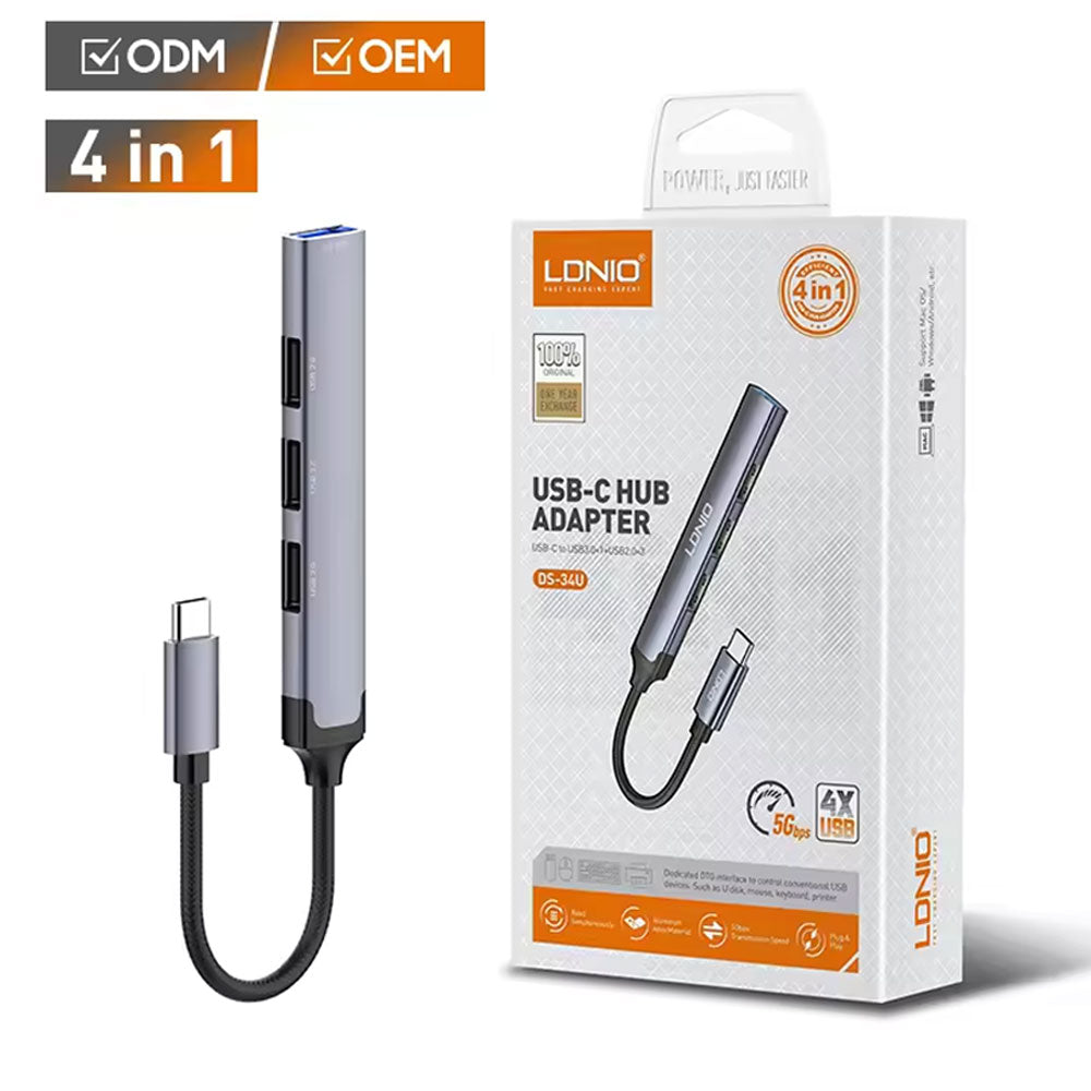 LDNIO DS-34U محطة إرساء كمبيوتر محمول صغيرة بتصميم جديد 4 في 1 USB C صغيرة ومريحة للحمل