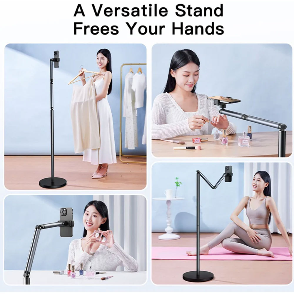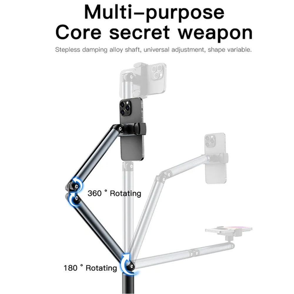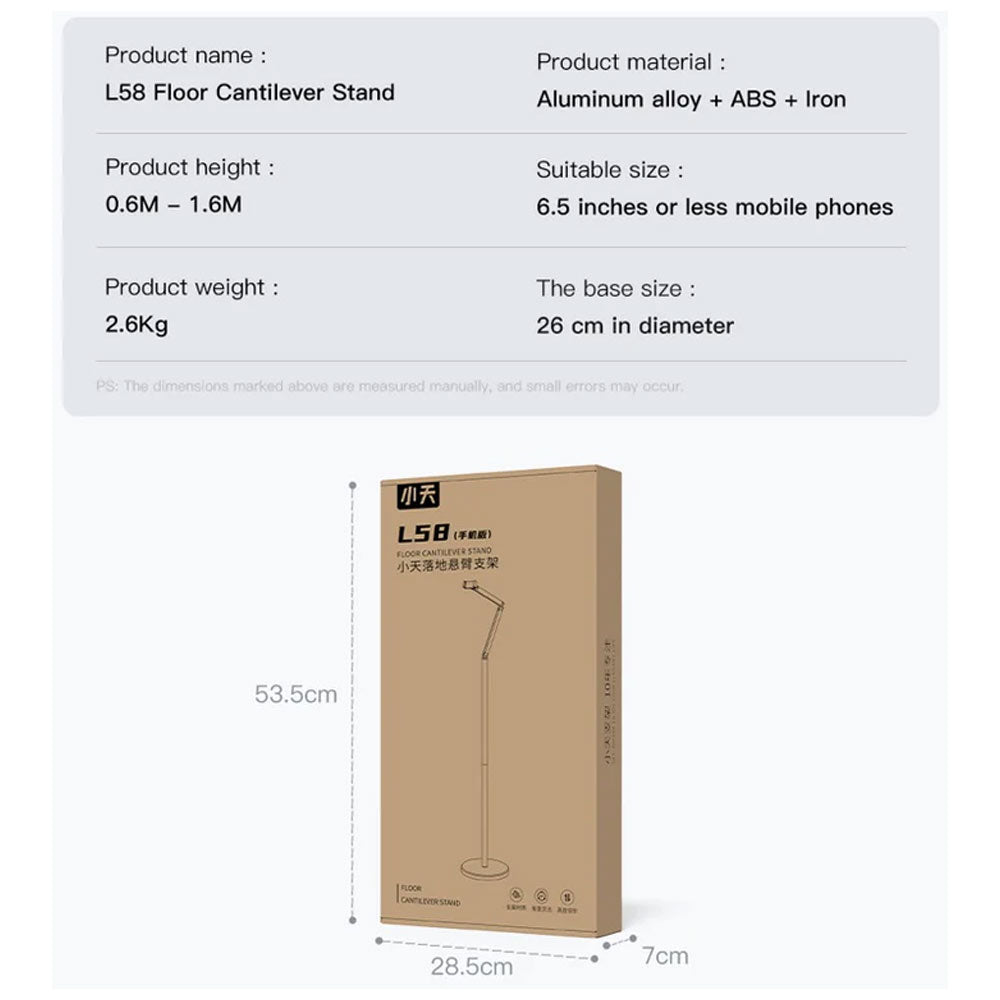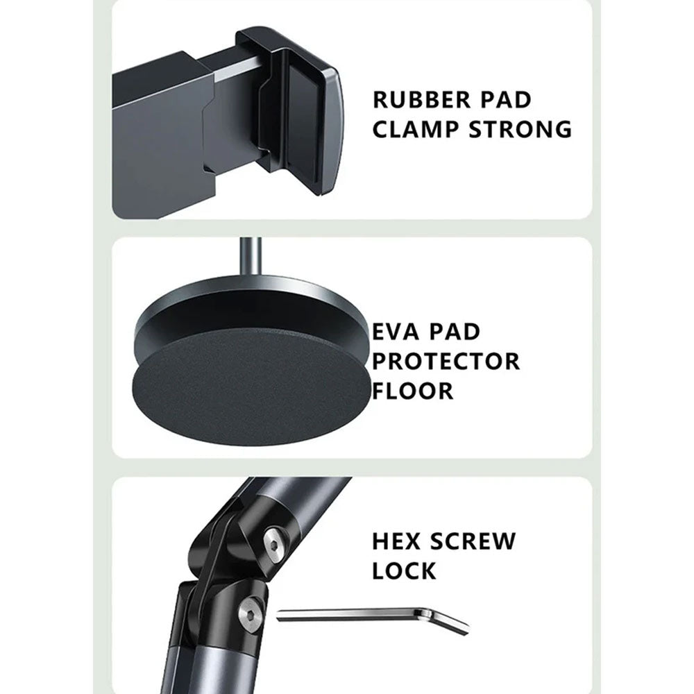 حامل أرضي عالمي بذراع مرن دوار 360 درجة وقاعدة ثابتة (26 سم، وزن 2.6 كجم) لهاتف يصل حجمه إلى 6.5 بوصة، رقم الموديل: L58l58