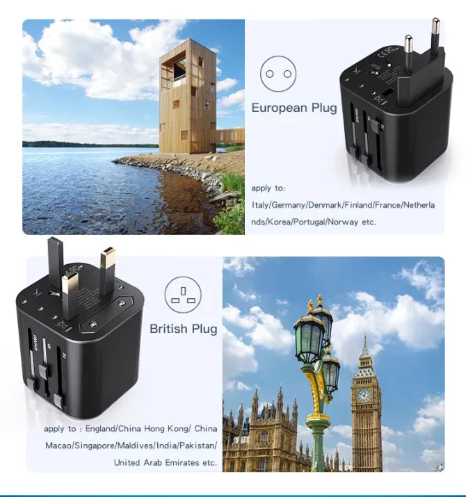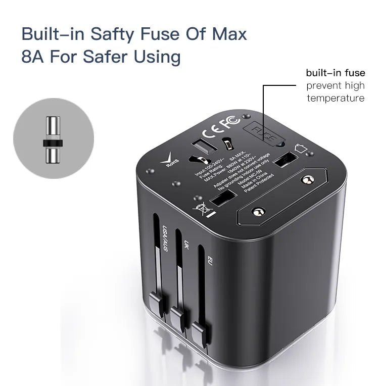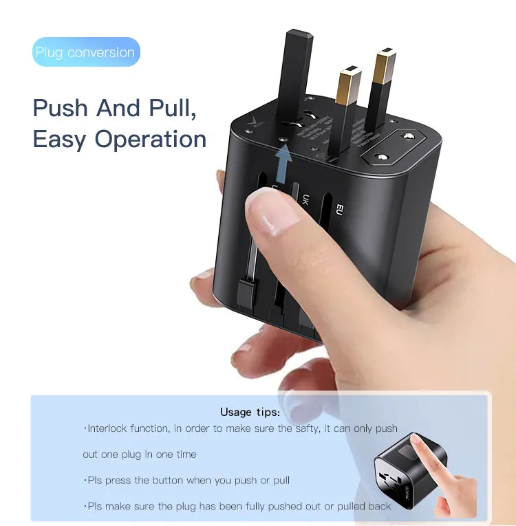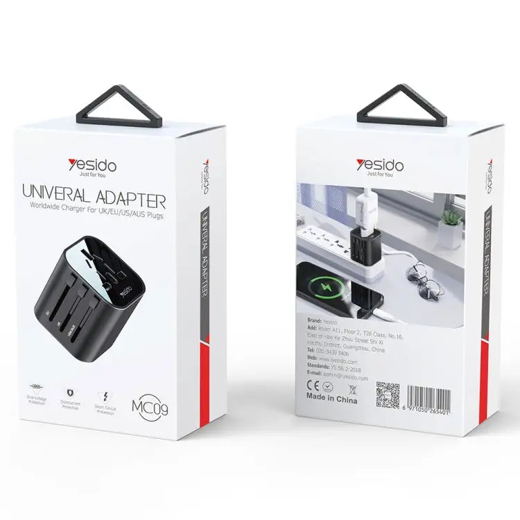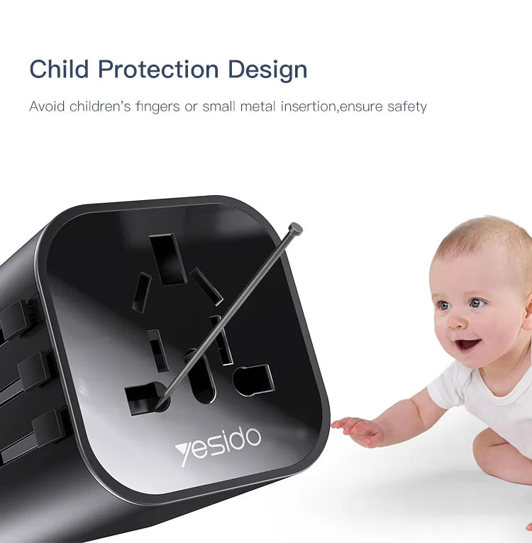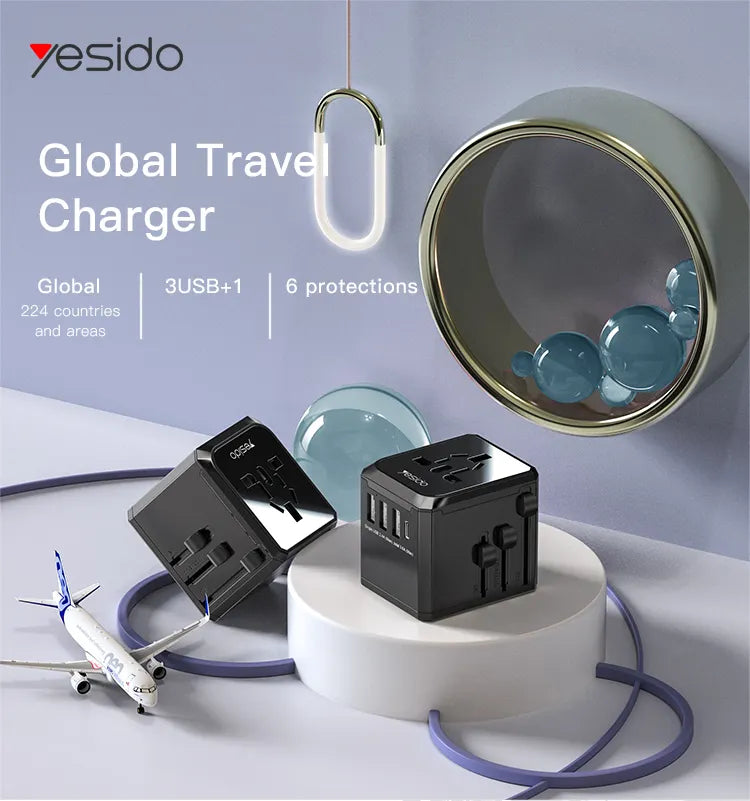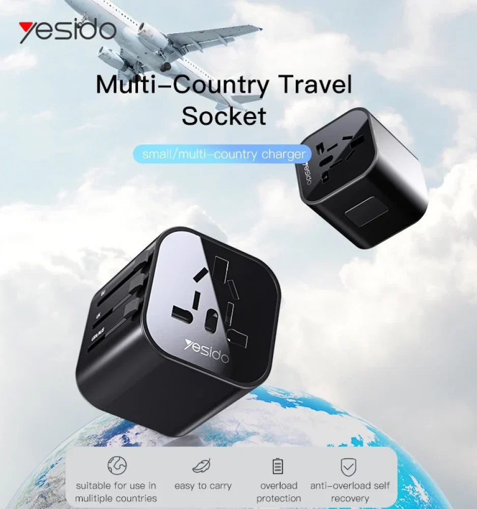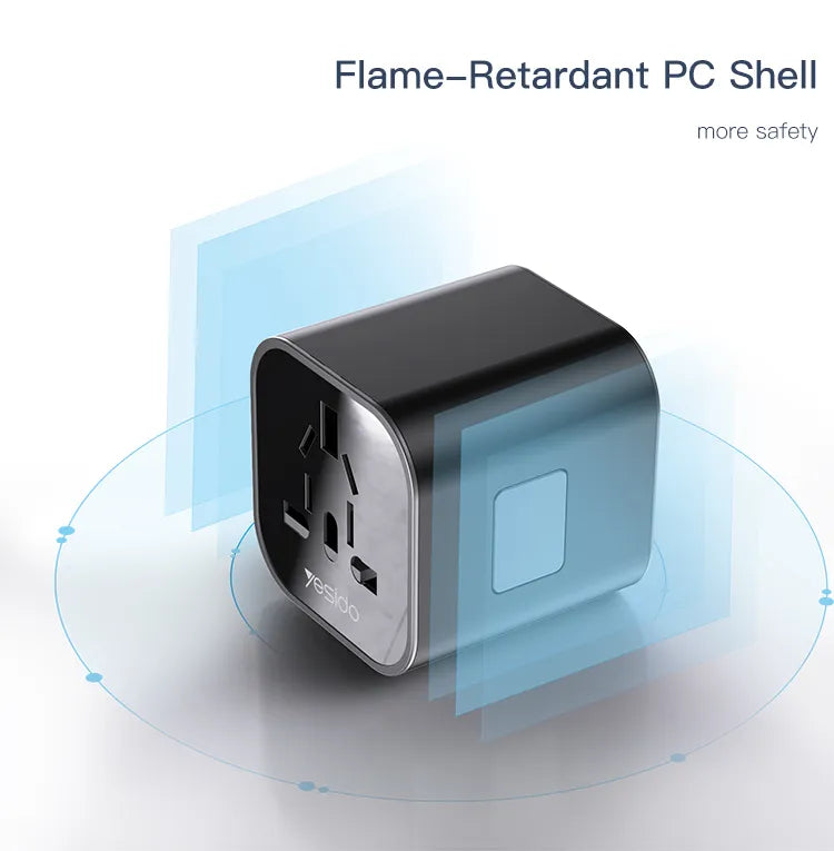 YESIDO تصميم جديد متعدد الوظائف شاحن الجدار المكونات تحويل محول مع USB والنوع C شاحن محول عالمي، شاحن في جميع أنحاء العالم. حماية الجهد الزائد الحماية من التيار الزائد حماية ماس كهربائى