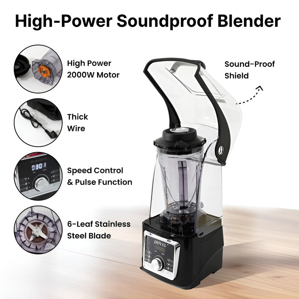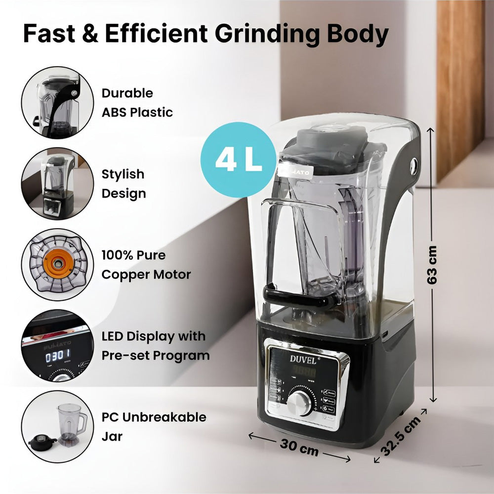 خلاط قوي وعالي السرعة العازل للصوت بقوة 2200 واط مع وعاء 4 لتر غير قابل للكسر ومحرك نحاسي بالكامل من دوفيل DUVEL DL-70