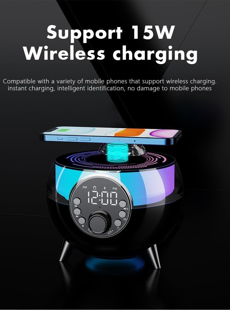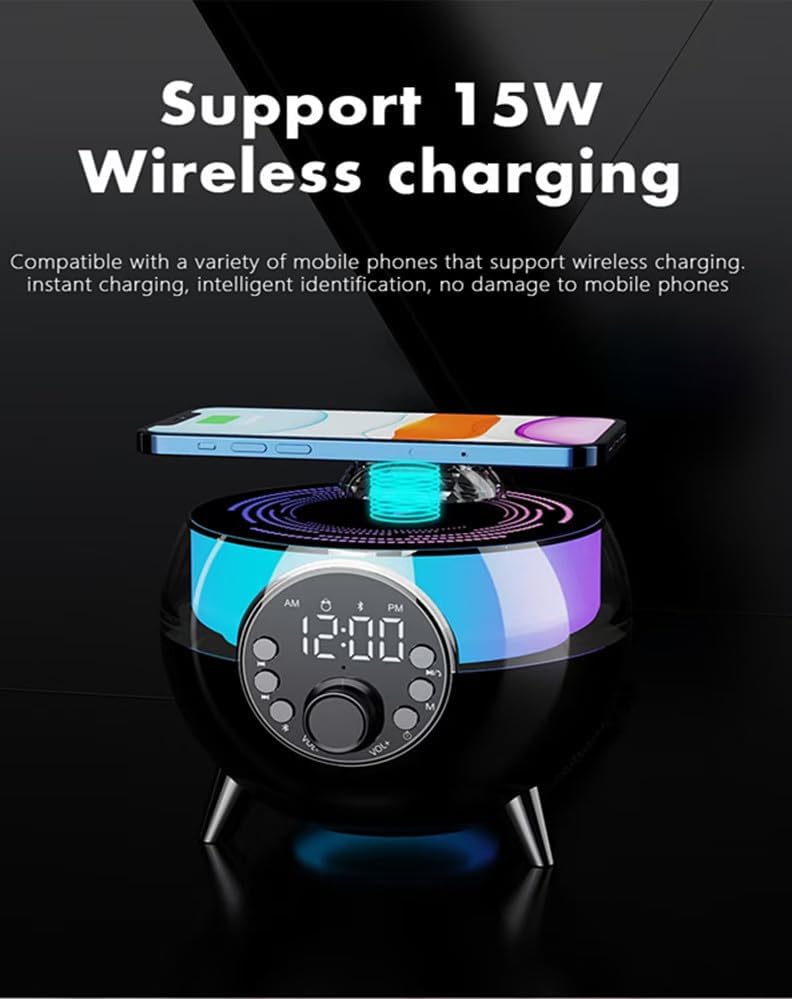 مصباح مكتبي ذكي بإضاءة تنبيه للاستيقاظ الصوتي، 15 وات شحن لاسلكي سريع، مصباح محيطي ذكي مع ساعة منبه صوت بلوتوث، للبالغين والأطفال، هدايا لغرفة النوم المكتبية