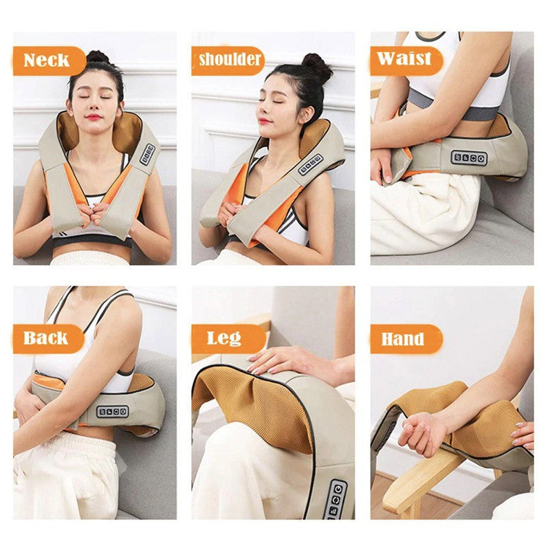 يتميز بتقنية العجن العميق التي تحاكي يد المعالج المحترف، مما يساعد على تخفيف التوتر وآلام العضلات وتشنجات الرقبة والظهر بعد يوم طويل من العمل أو القيادة.