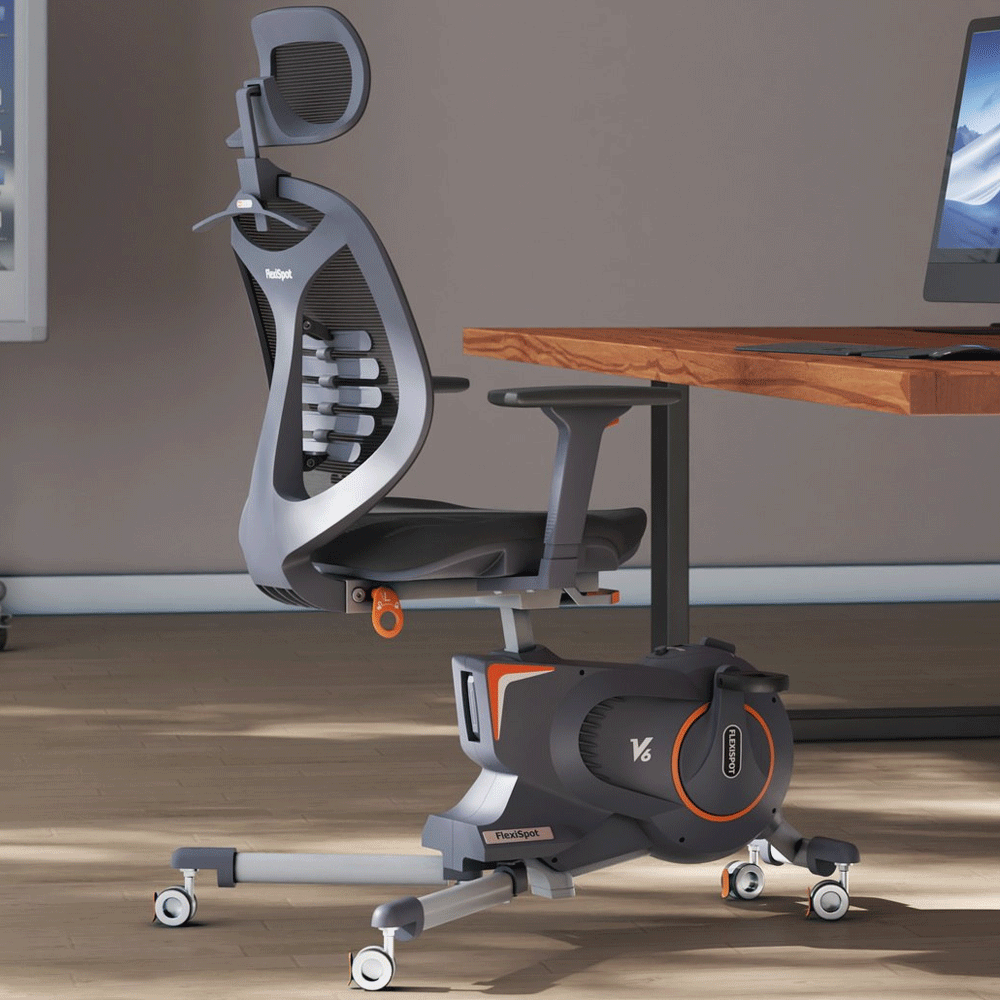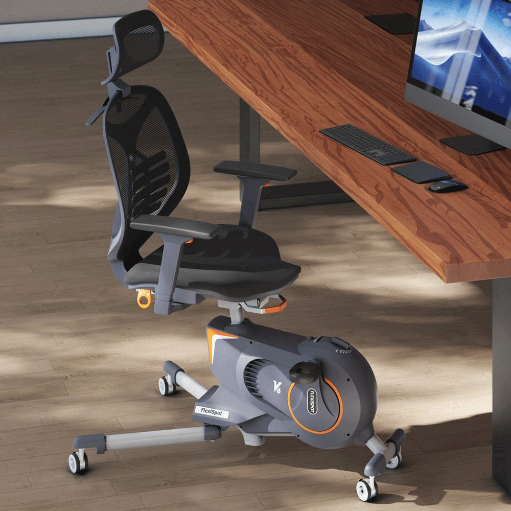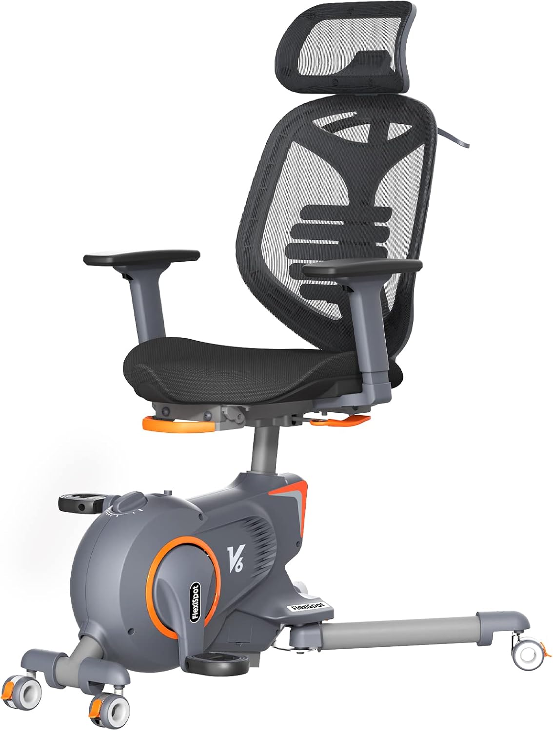 دراجة تمارين اللياقة البدنية V6 من FLEXISPOT مزودة بهيكل رئيسي Sit2Go 2 في 1 كرسي مكتب للدراجة سبين وسادة قابلة للطي قابلة للقفل