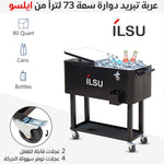 صندوق وعربة تبريد متحرك بسعة 73 لتر من ILSU مع اربع عجلات متحركة مع قفل العجل وحامل ستاند في الاسفل وعربة تبريد للمشروبات والحفلات وحمام السباحة والحديقة