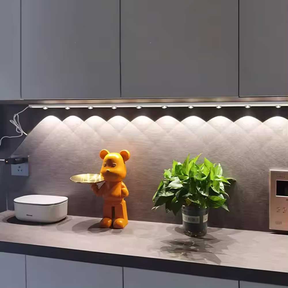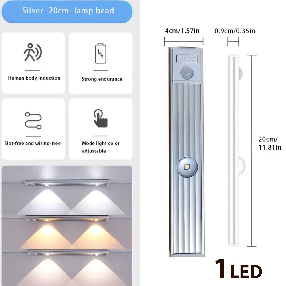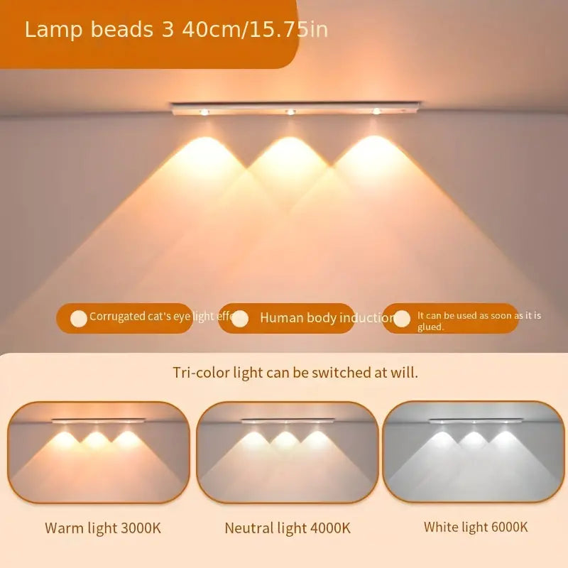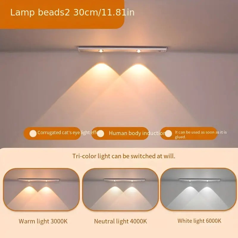 مصباح LED تحت الخزانة مع مستشعر حركة ضوء ليلي، ضوء عين القط النحيف القابل لإعادة الشحن عبر USB مع 3 درجات حرارة ألوان للتعتيم بدون خطوات للخزانات والخزائن والمطابخ وخزائن الحائط والمداخل والسلالم