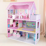 يأتي هذا البيت متعدد الطوابق مع مجموعة متكاملة من قطع الأثاث الخشبي المصغر لتأثيث غرف النوم، المطبخ، الحمام، وغرفة المعيشة.