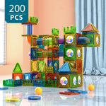 200 قطعة من بلاط البناء المغناطيسي الشفاف ثلاثي الأبعاد للأطفال