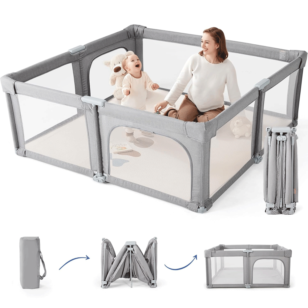 حباسة لعب الأطفال ، بوابة أطفال قابلة للطي للرضع والأطفال الصغار، حباسة لعب كبيرة جدًا مع ساحة لعب باب للسياج الداخلي والخارجي، لون رمادي