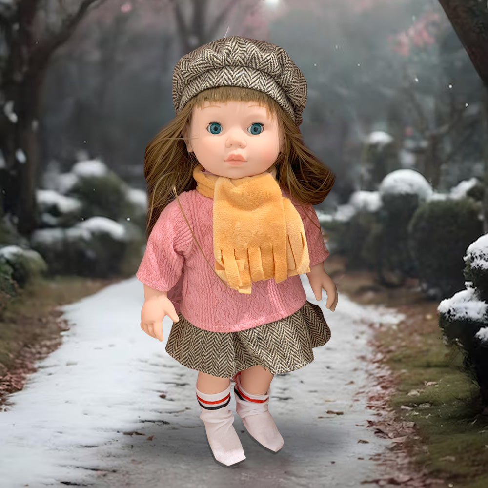 • الملابس: ترتدي الدمية ملابس لطيفة ومفصلة، بما في ذلك الإكسسوارات مثل القبعات والجوارب والبطانيات.