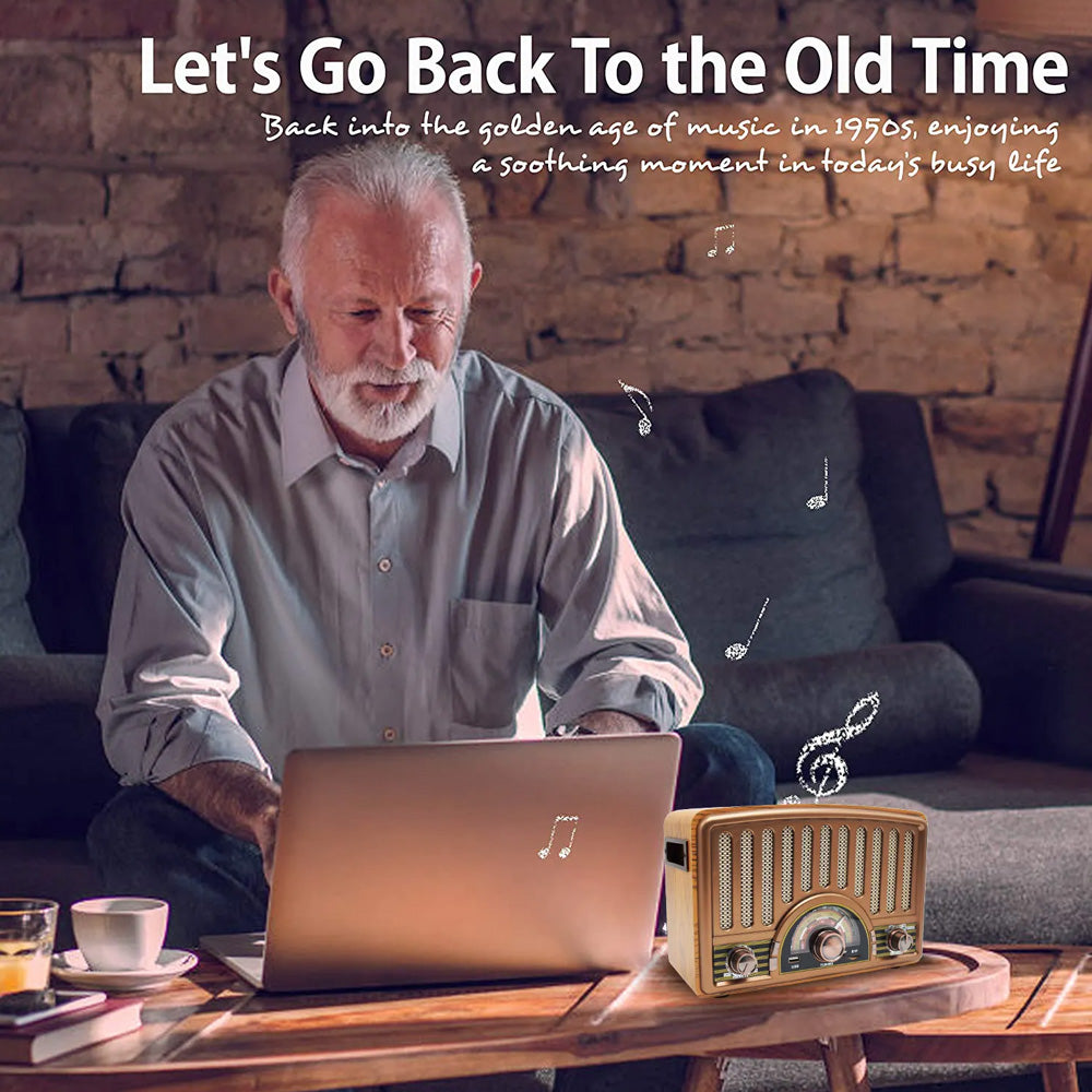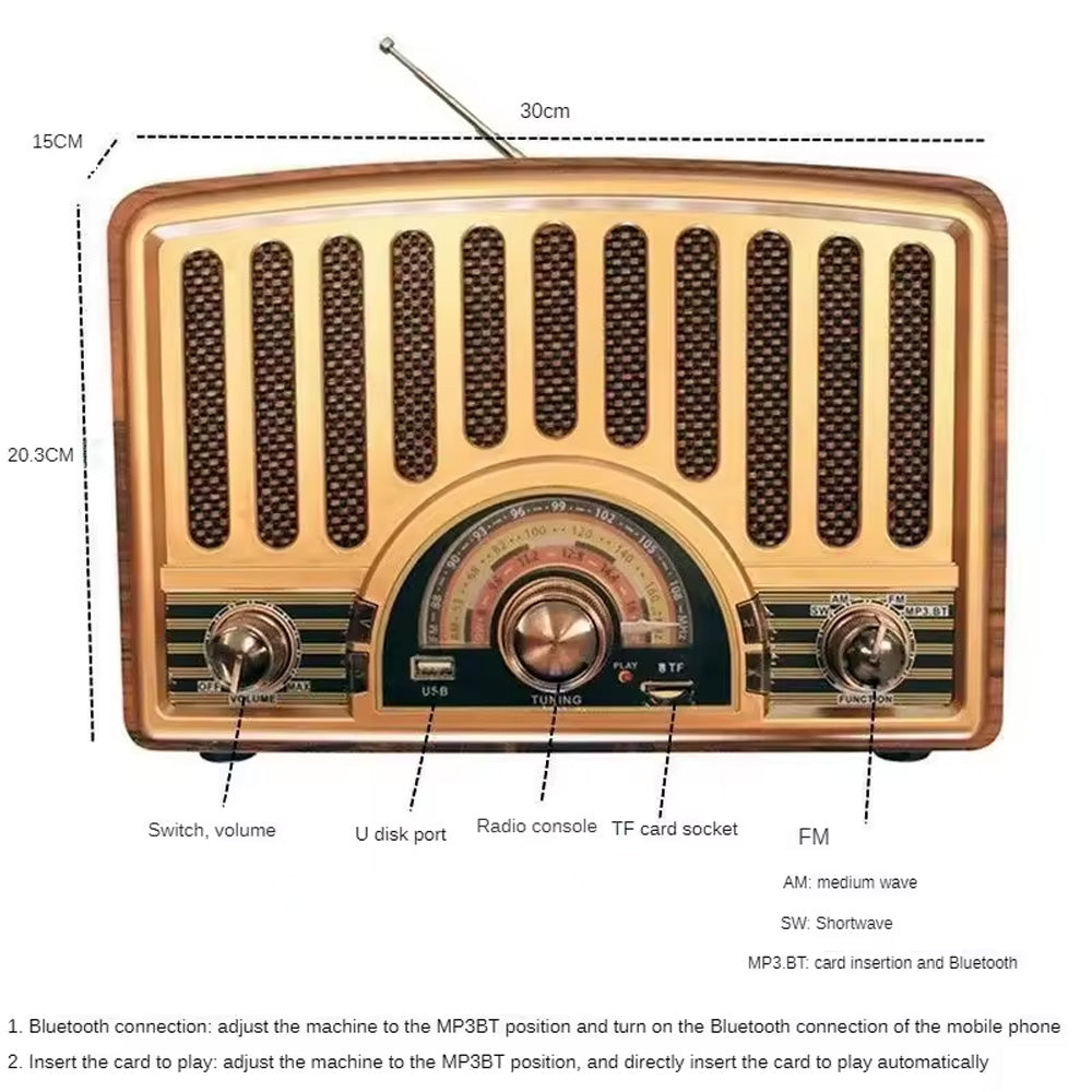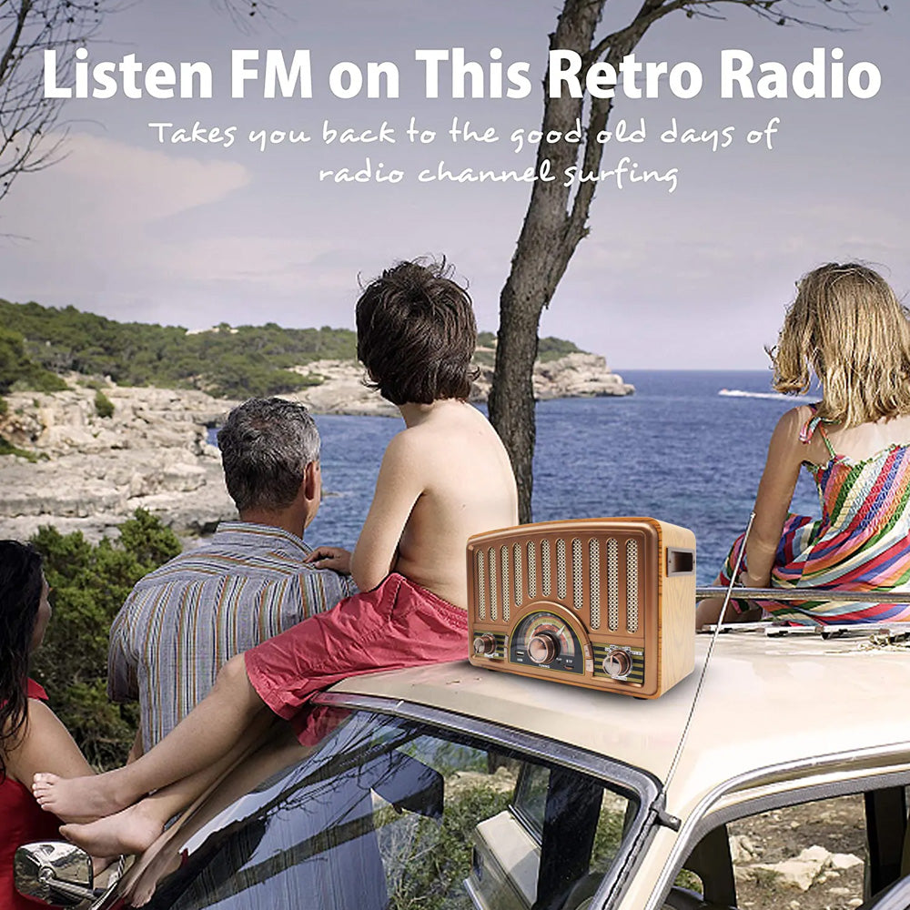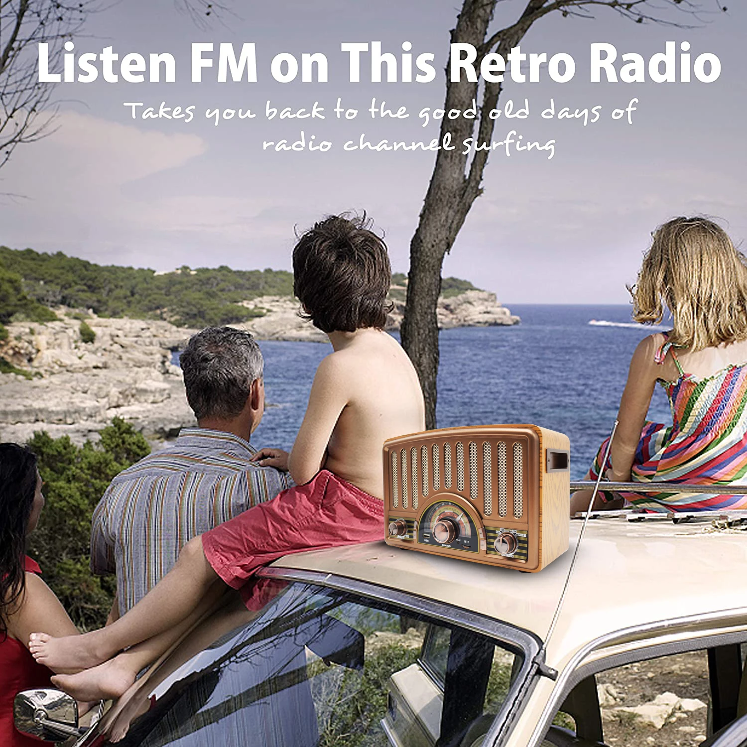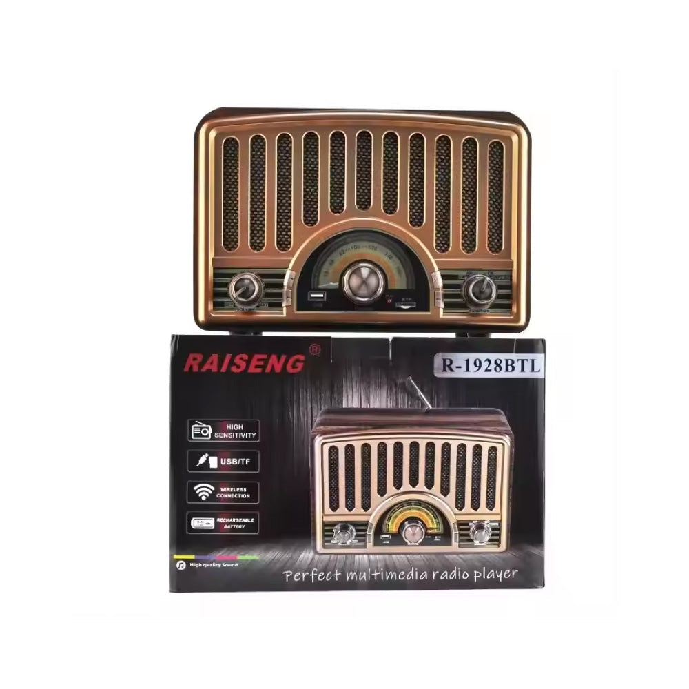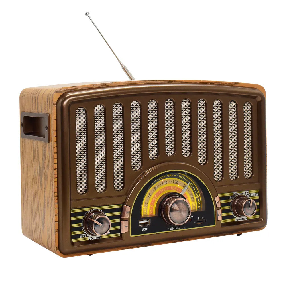 راديو R-1928BT ريترو متعدد مكبرات الصوت مع بلوتوث، قابل لإعادة الشحن
