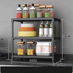 استغل مساحة مطبخك على أكمل وجه مع هذا الرف المتين ثلاثي الطبقات، بأبعاد 44×26×58 سم. مثالي لتخزين الأطباق والتوابل والمرطبانات والأجهزة الصغيرة، مع الحفاظ على مطبخك مرتبًا وسهل الوصول إليه. متوفر باللونين الأبيض والأسود الأنيقين.