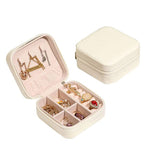منظم مجوهرات من الجلود بسحاب محمولة . بوكس تخزين مربع مع فواصل الحاويات للخواتم والأقراط وقلادة المنزل المنظم