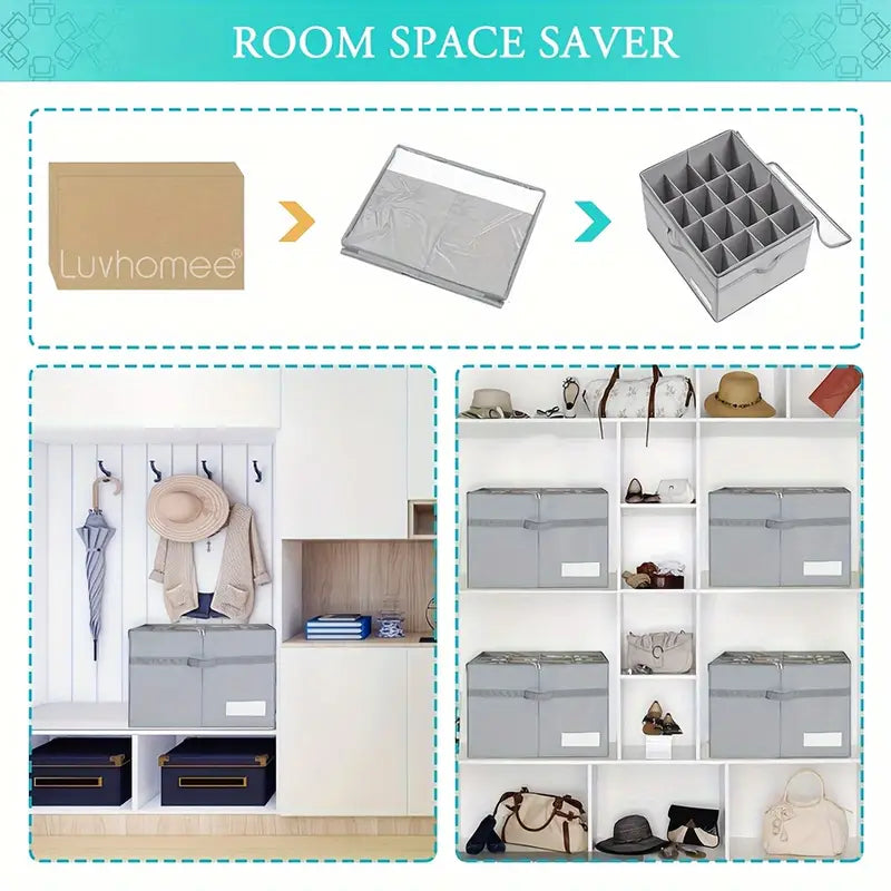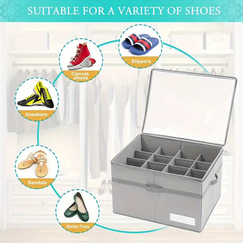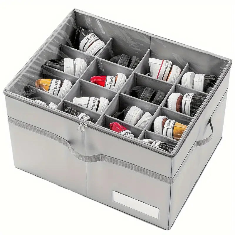منظم أحذية بـ 16 زوجًا، شفاف قابل للطي من قماش تخزين الأحذية بقاعدة داعمة، صناديق أحذية مستطيلة كبيرة، مقاومة للماء، إغلاق بواسطة الضغط، حامل أحذية موفر للمساحة بمقابض معززة، رمادي، أثاث خزانة متعدد الاستخدامات