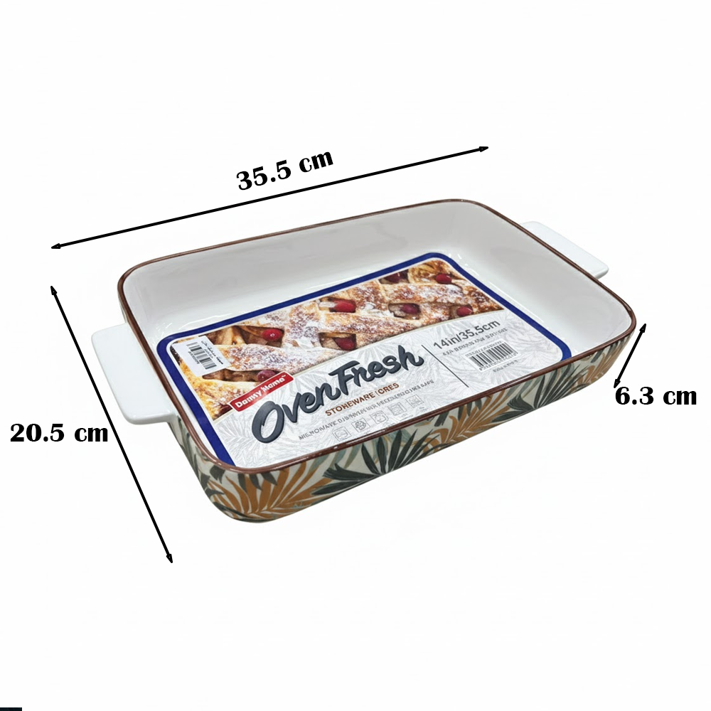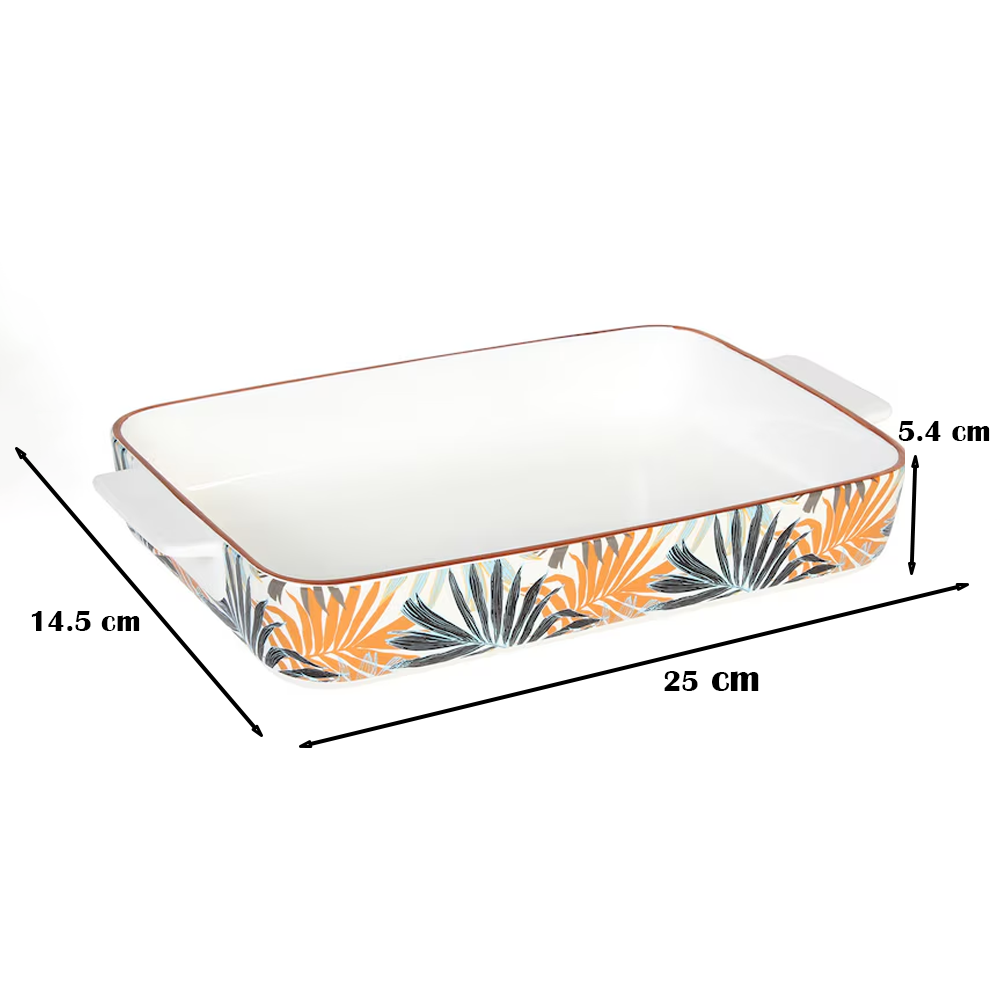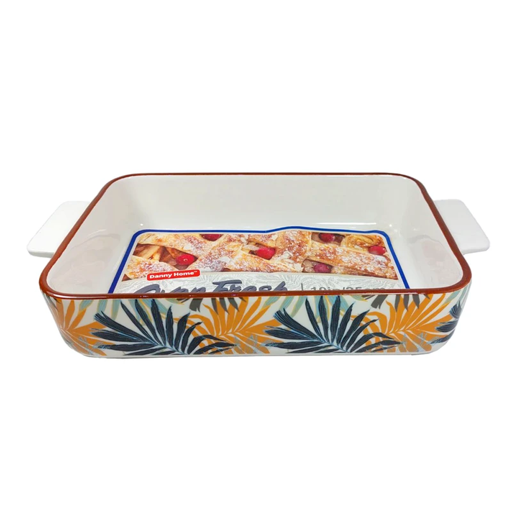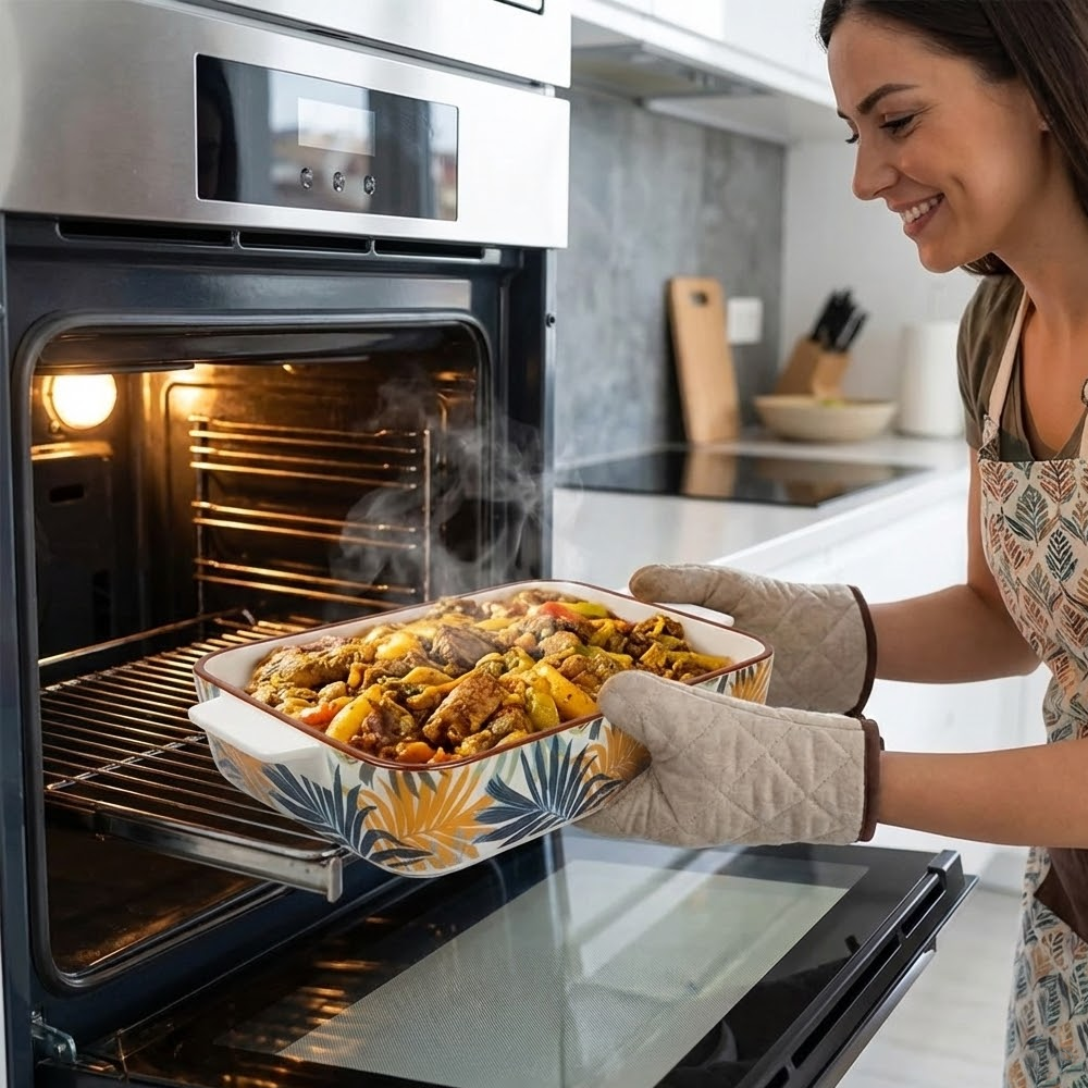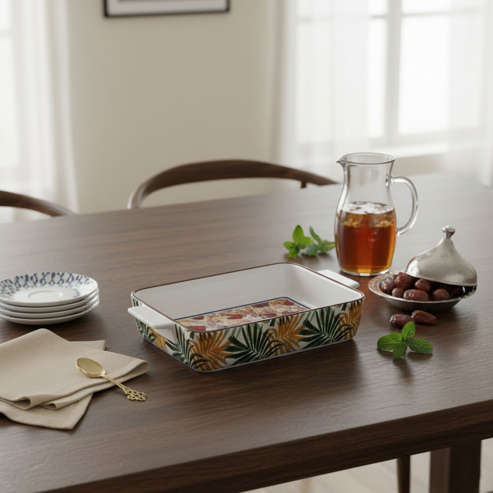 ارتقِ بتجربة الطهي والتقديم مع صينية الفرن السيراميك المستطيلة ذات التصميم المزخرف الأنيق المستوحى من الطبيعة.