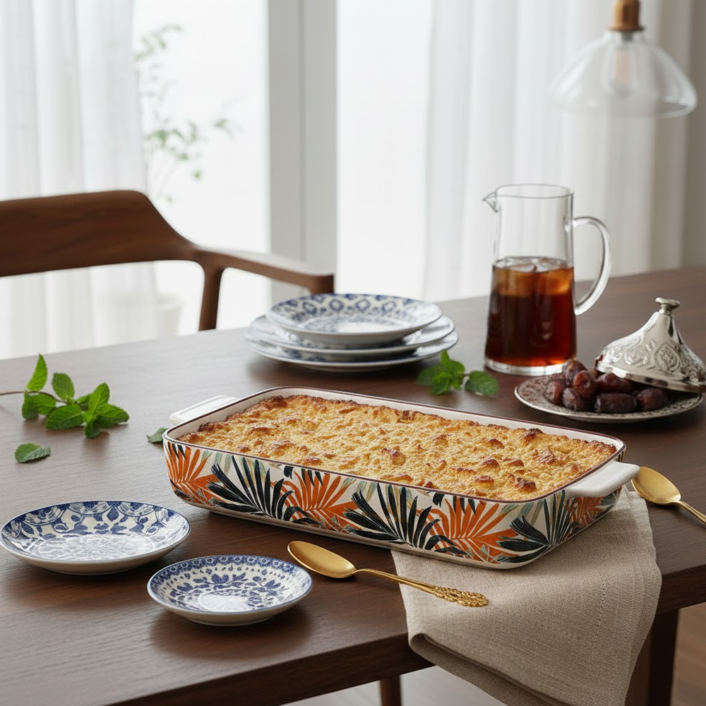مصنوع من سيراميك (Stoneware) عالي الجودة يتحمل درجات الحرارة المرتفعة ويوزع الحرارة بشكل متساوٍ، ليمنحك نتائج طهي مثالية في كل مرة، سواء للأطباق المالحة أو الحلويات.