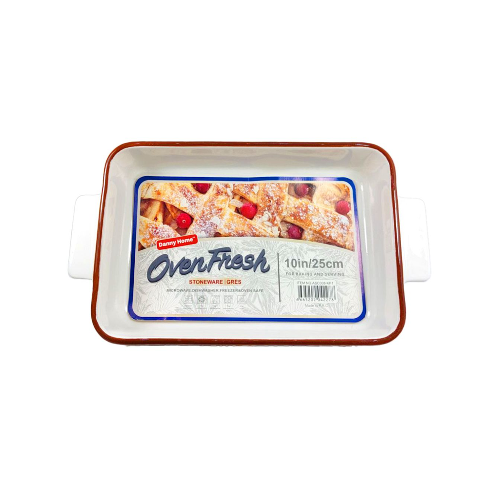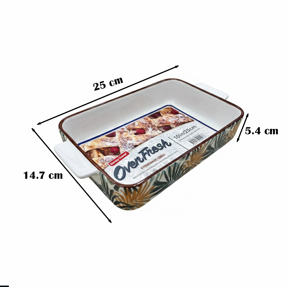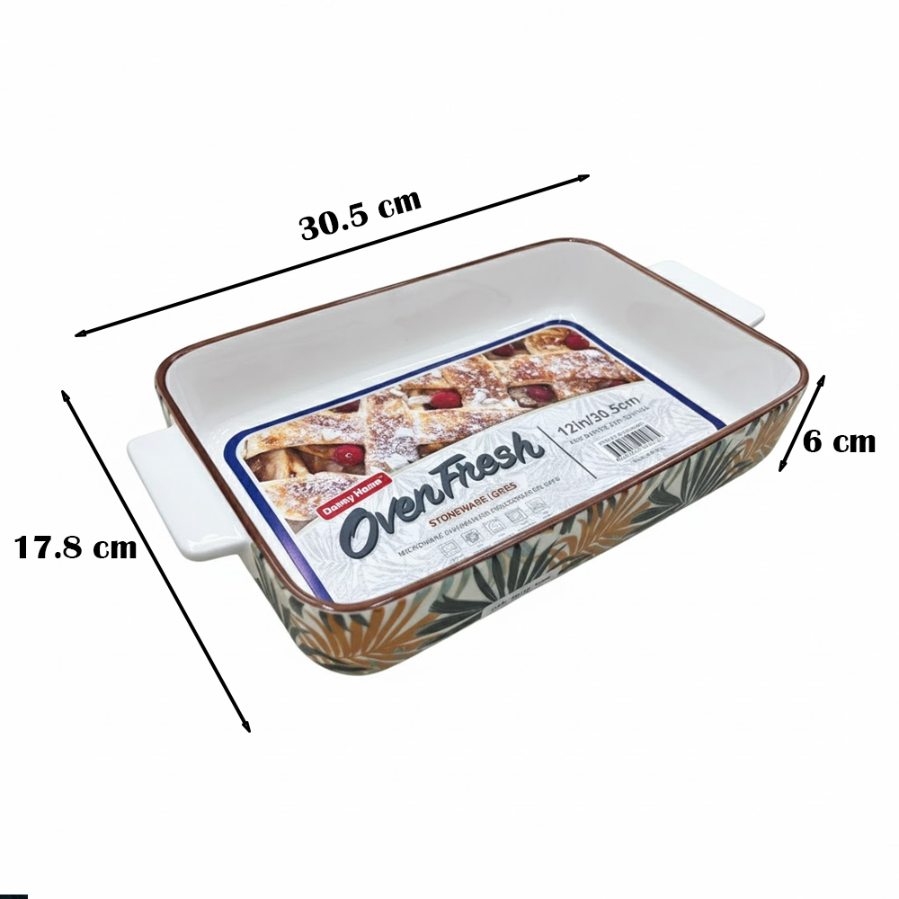 صينية فرن سيراميك مستطيلة مزخرفة بمقابض – مثالية للخبز والتقديم
