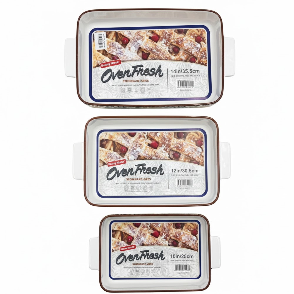 صواني فرن سيراميك مزخرفة بنقشة أوراق – 3 قطع متعددة الأحجام مقاومة للحرارة
