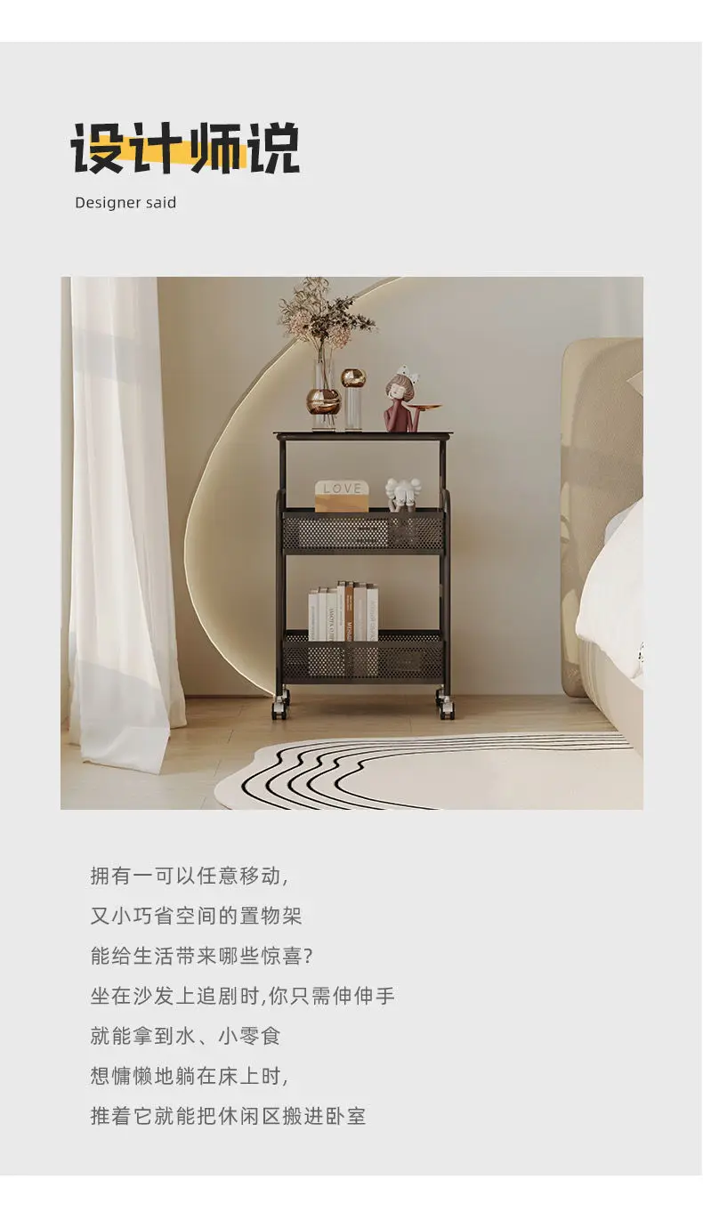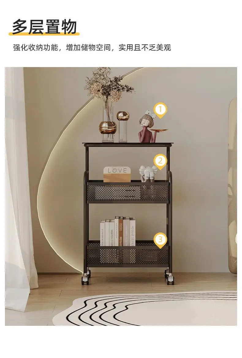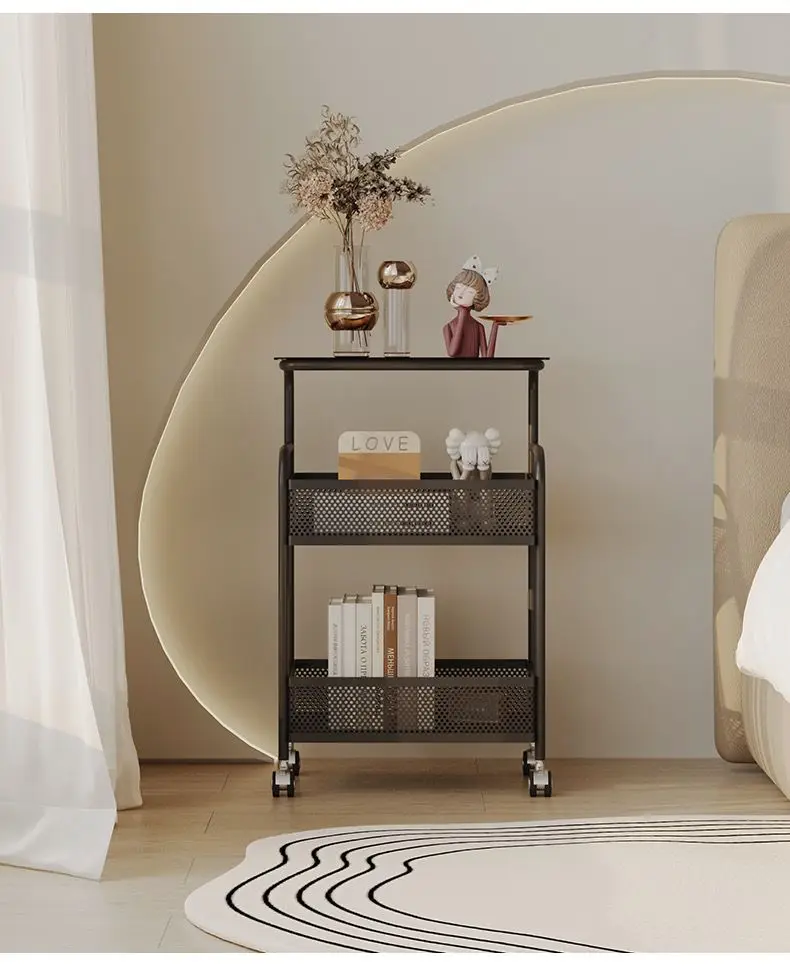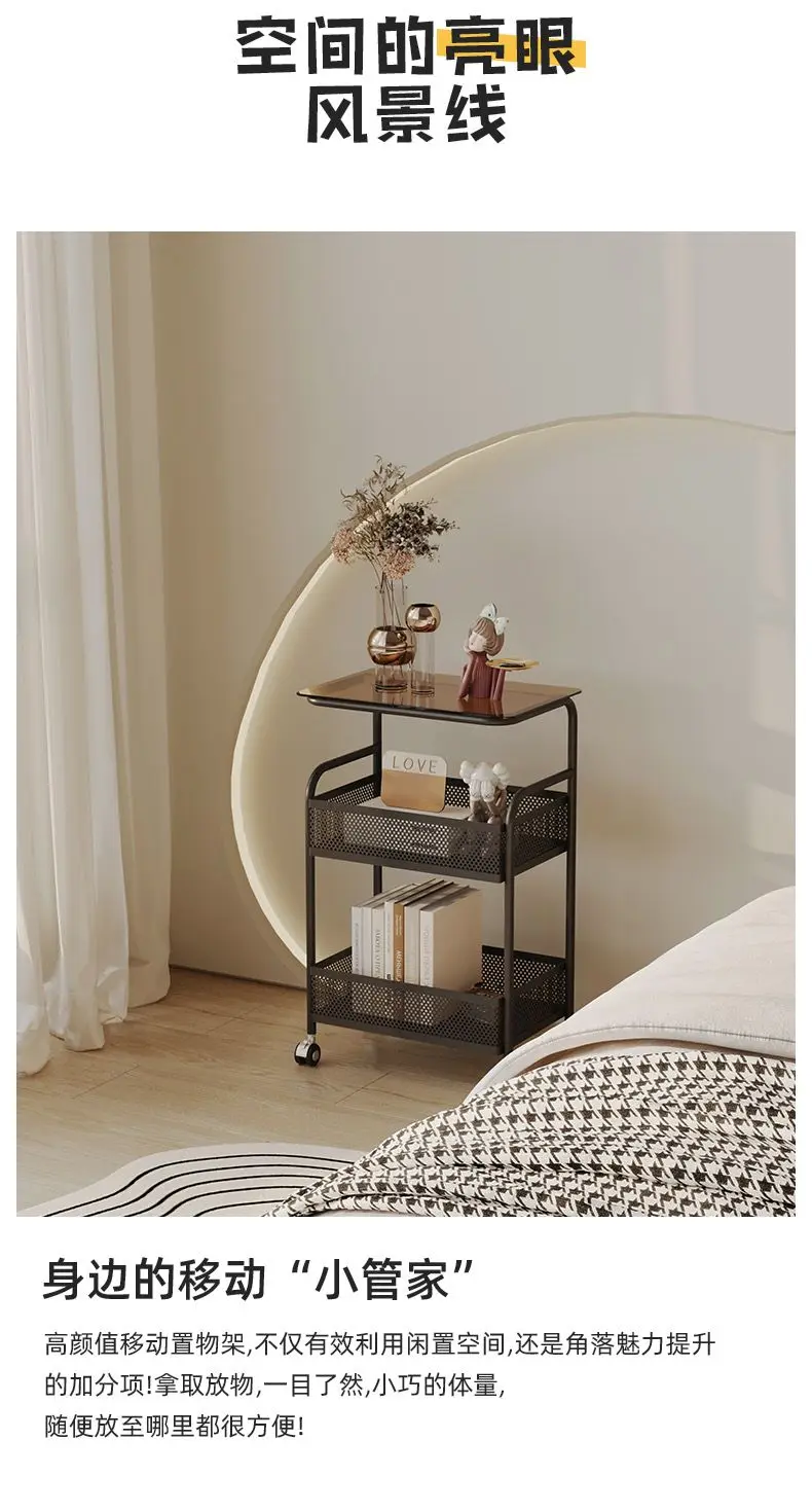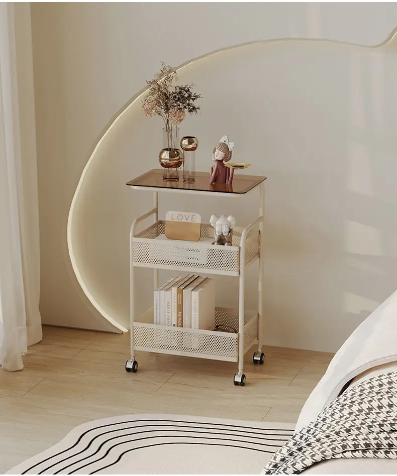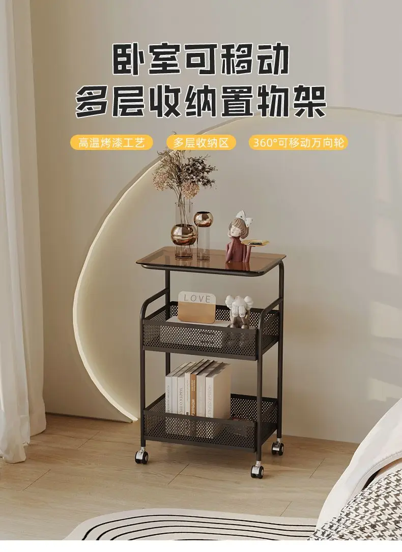 طاولة متحركة مع أرفف تخزين ، طاولة بجانب السرير، رف تخزين متحرك، منظم للمطبخ والحمام، حامل مستحضرات التجميل والوجبات الخفيفة