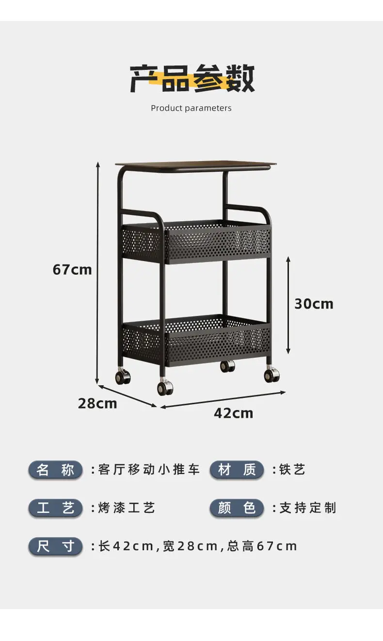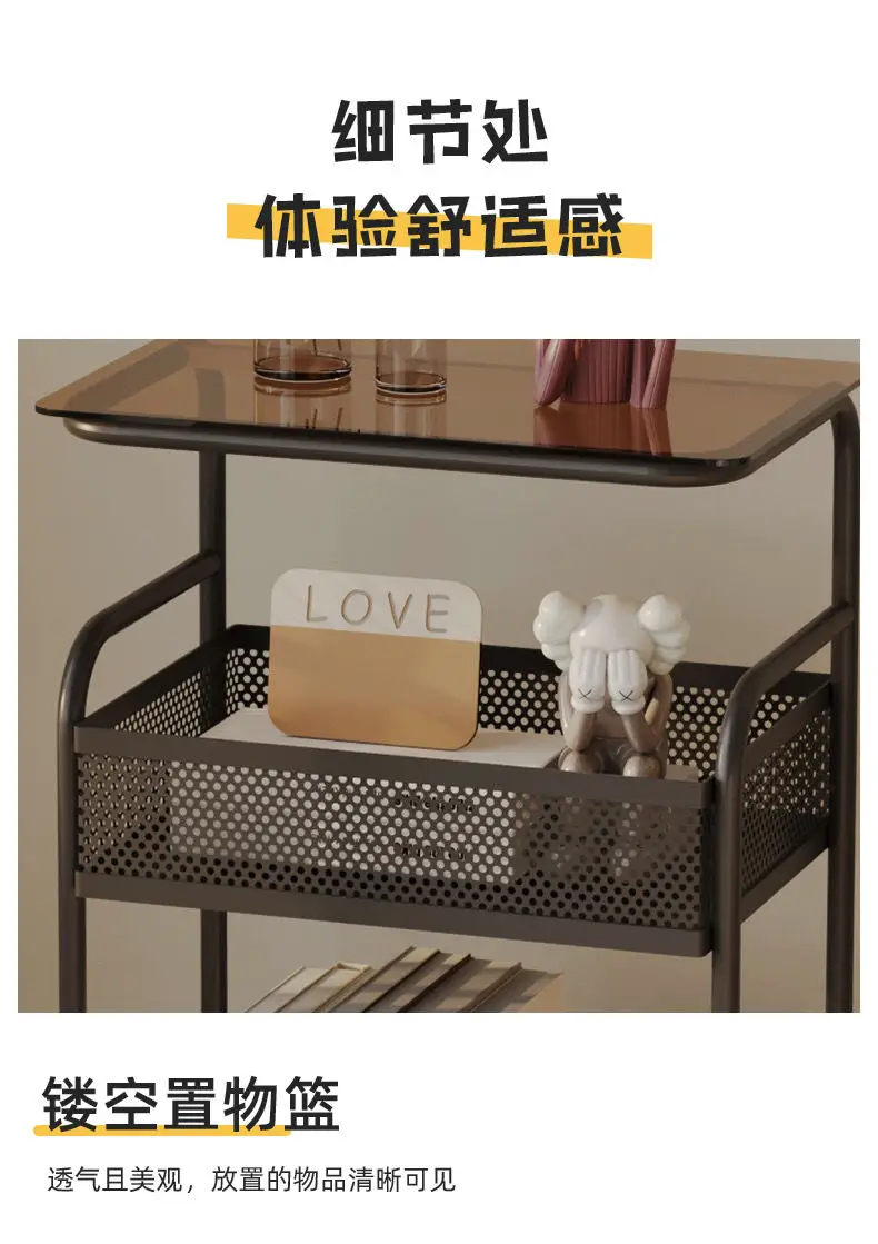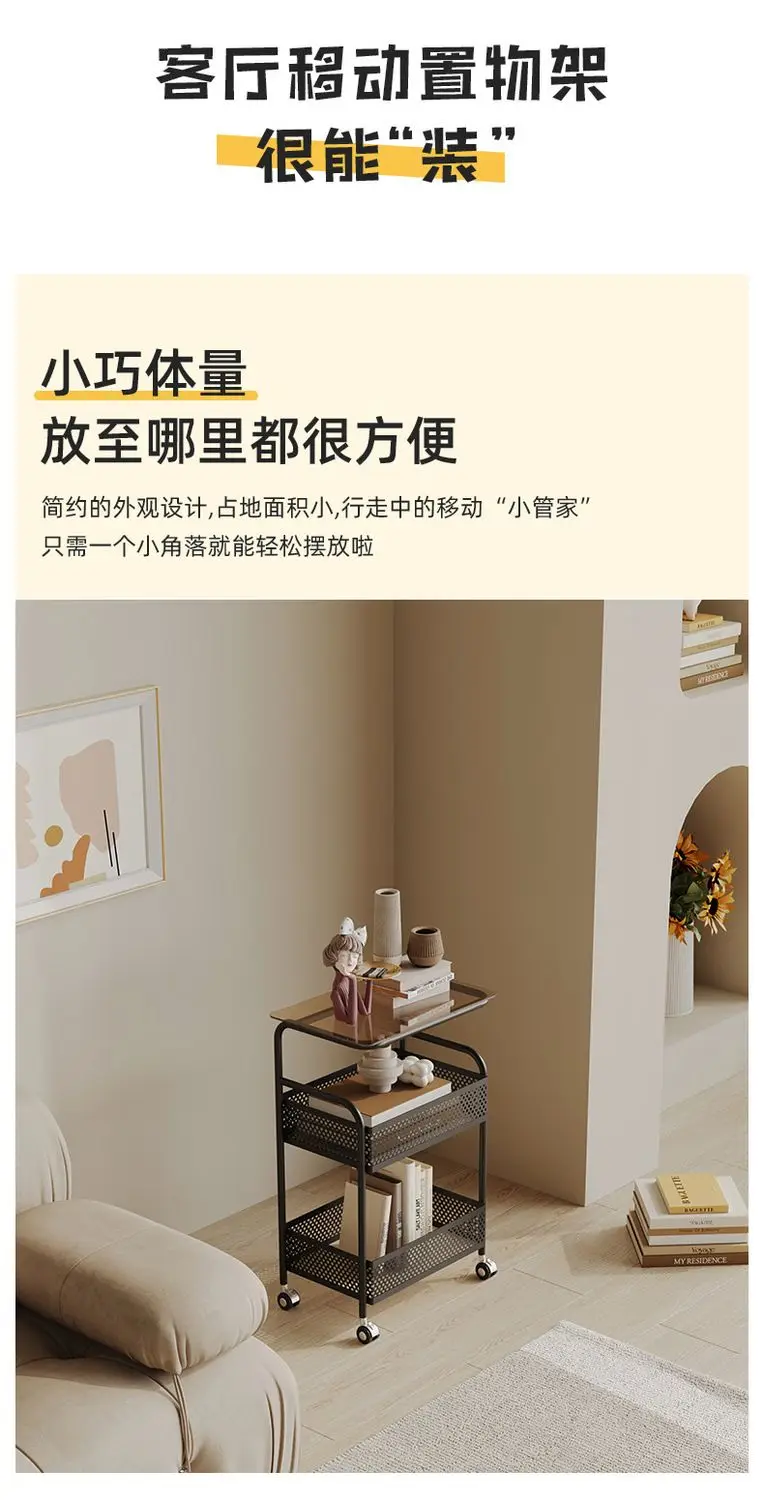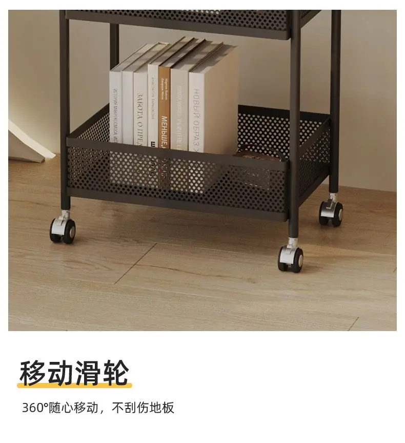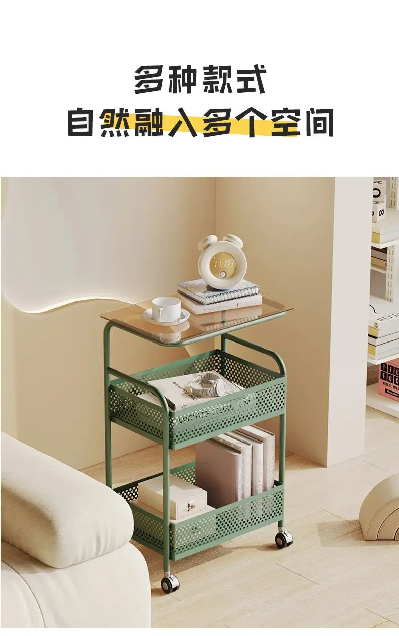 طاولة متحركة مع أرفف تخزين ، طاولة بجانب السرير، رف تخزين متحرك، منظم للمطبخ والحمام، حامل مستحضرات التجميل والوجبات الخفيفة