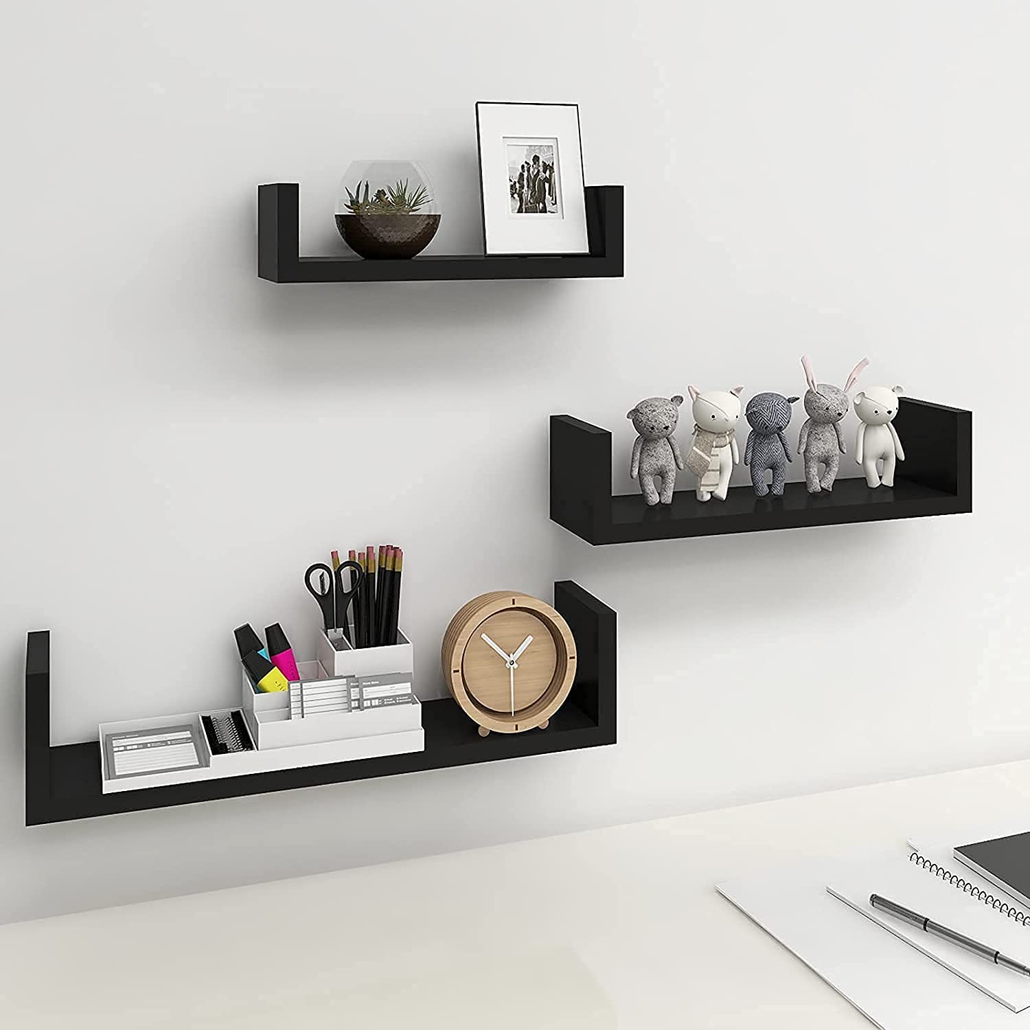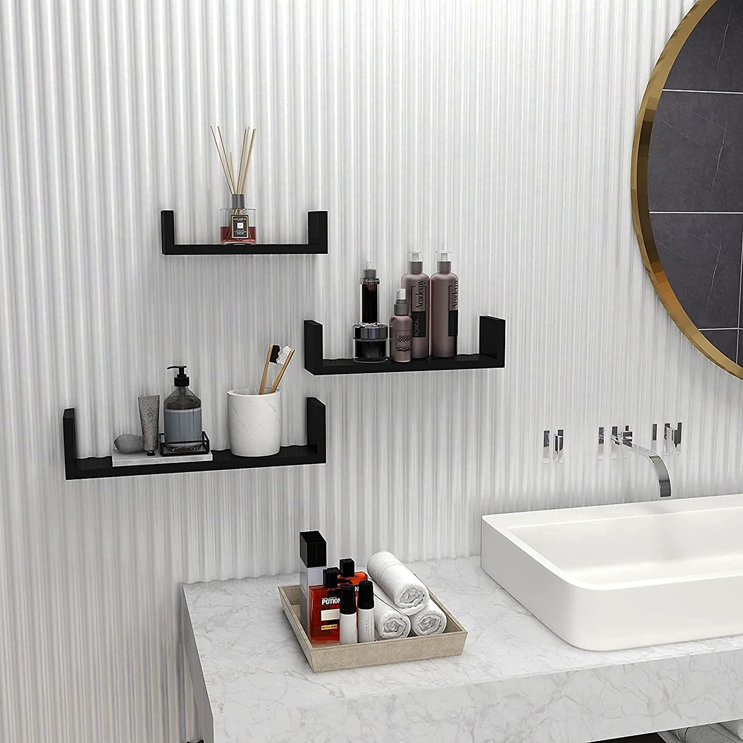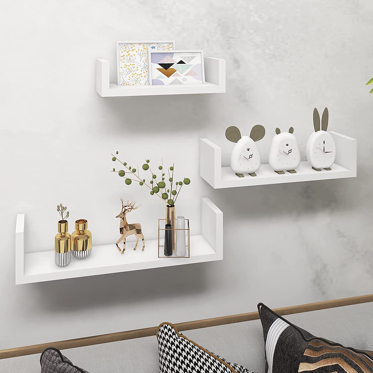 تُناسب هذه الرفوف ذات التصميم العصري على شكل حرف U غرف النوم والمعيشة والحمامات والمطابخ والمكاتب، وغيرها من أنماط الديكور المنزلي.