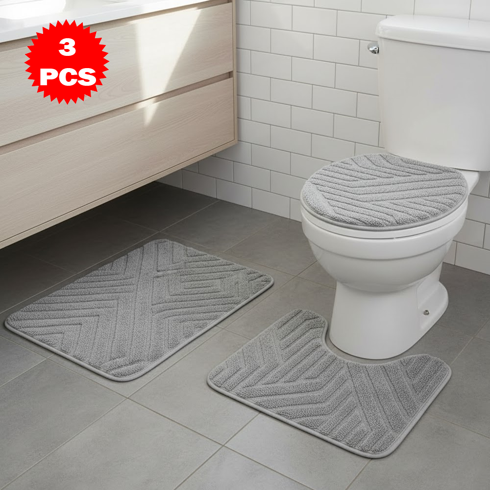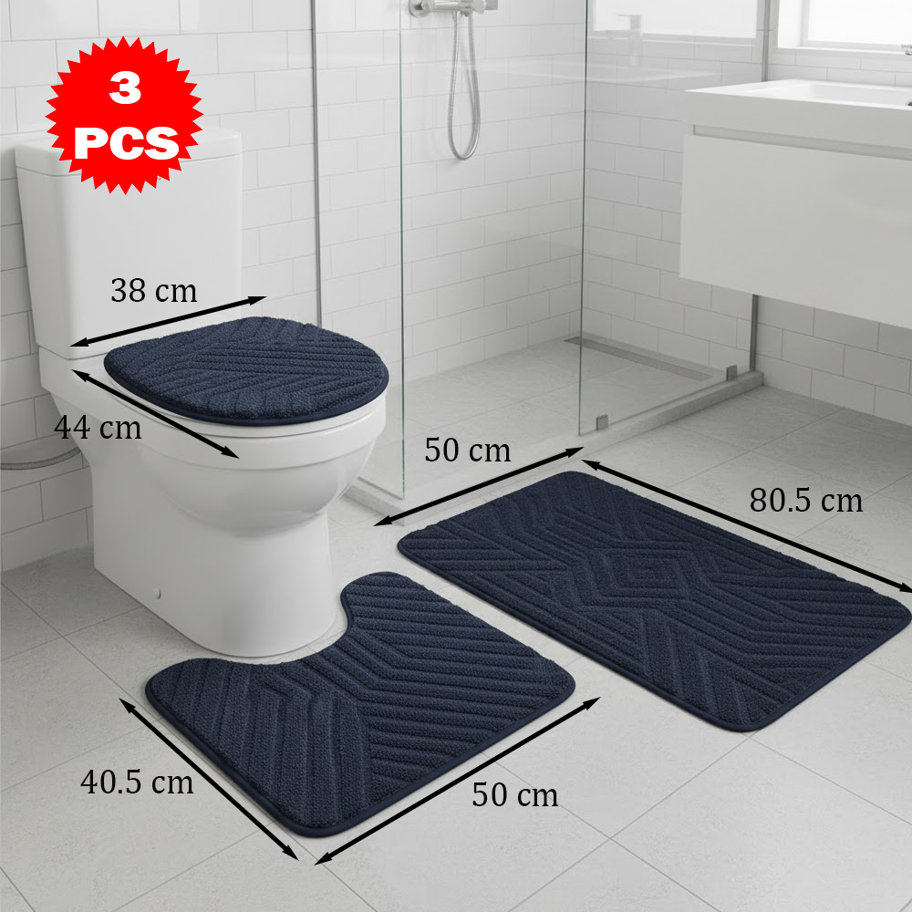 امنح حمامك لمسة فاخرة وأناقة استثنائية مع طقم سجاد الحمّام المكوّن من 3 قطع، المصمم ليجمع بين الراحة، الجمالية، وسهولة الاستخدام.