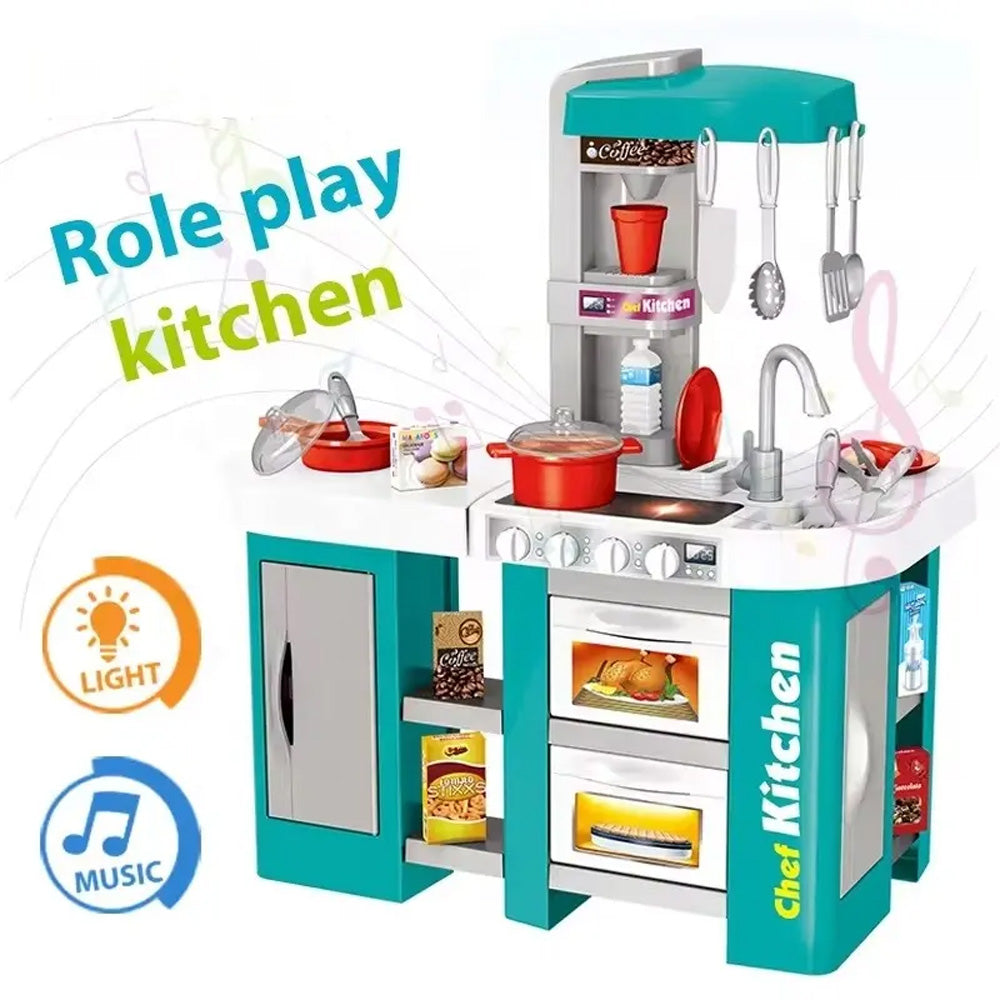 مجموعة طاولة طبخ مكونة من 53 قطعة لعبة مطبخ مع موسيقى خفيفة