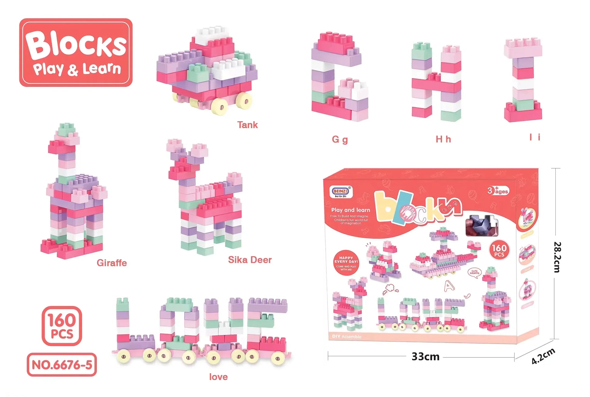 لعبة بناء مكعبات بلاستيكية ملونة 160 قطعة