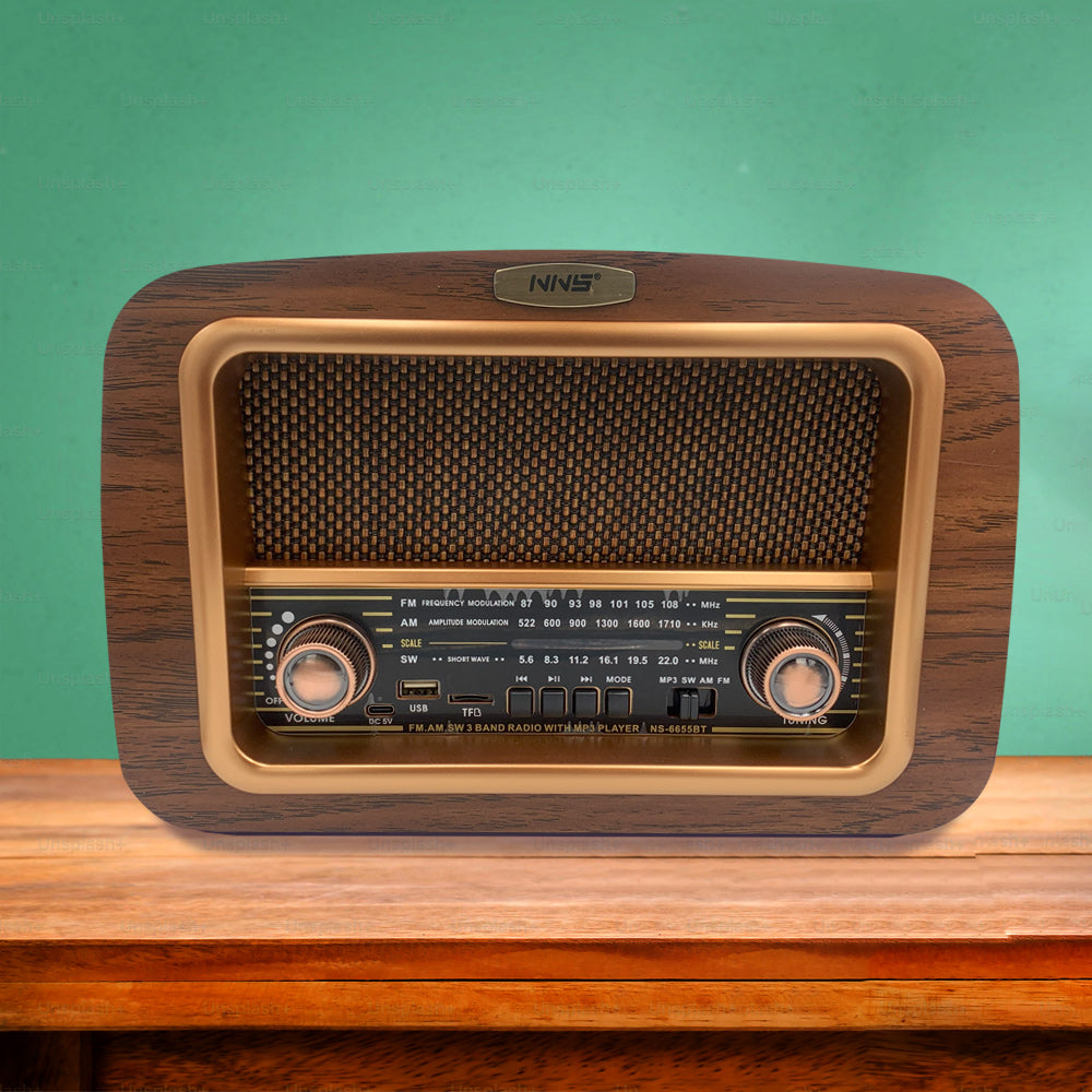 راديو AM/FM خارجي خشبي كلاسيكي عتيق الطراز NS-6655BT