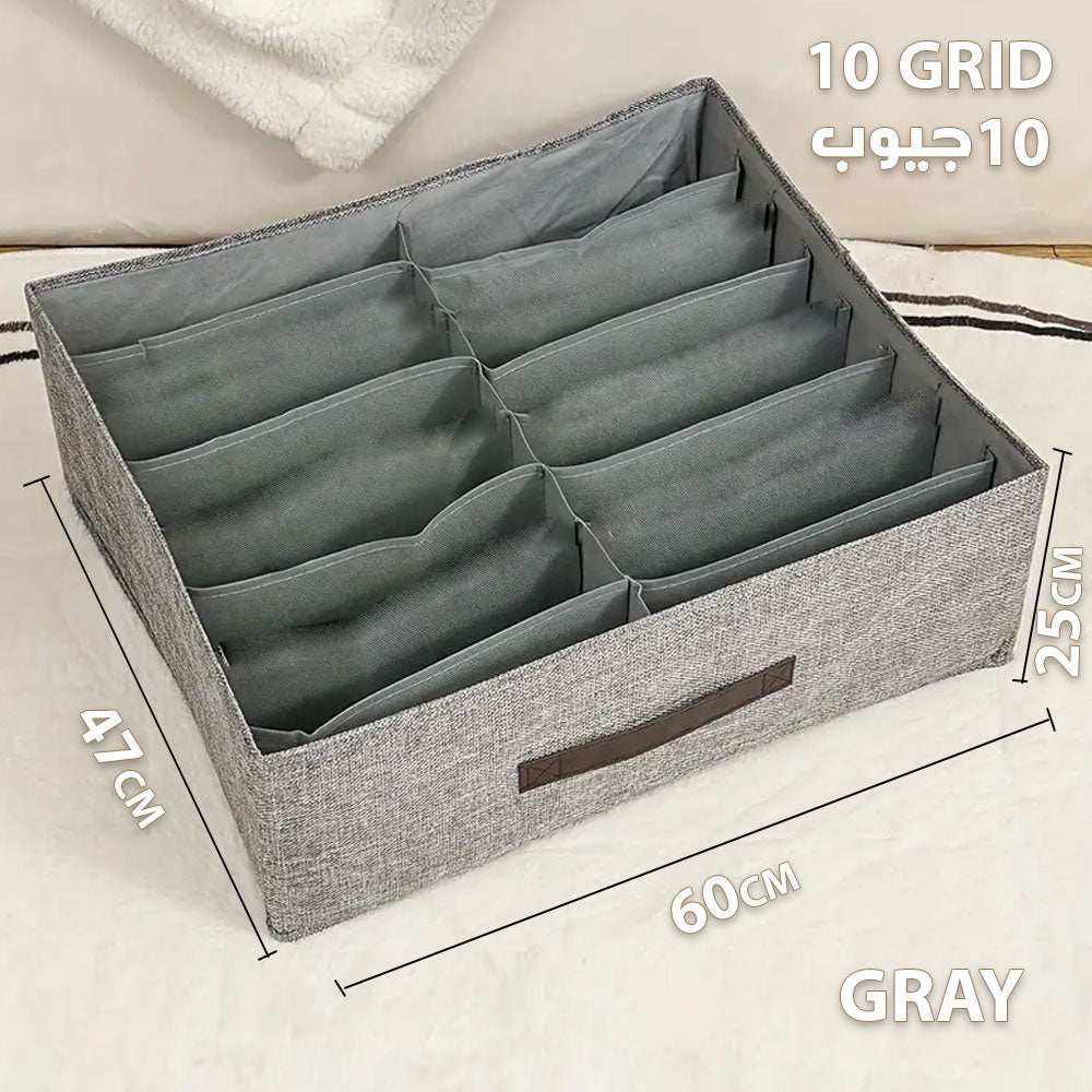 صندوق ذو سعة كبيرة بتصميم مقسم مقاوم للغبار، يحافظ على الترتيب، 10 شبكات كبيرة جدًا، صف مزدوج، منظم ملابس، مستلزمات غرفة النوم.